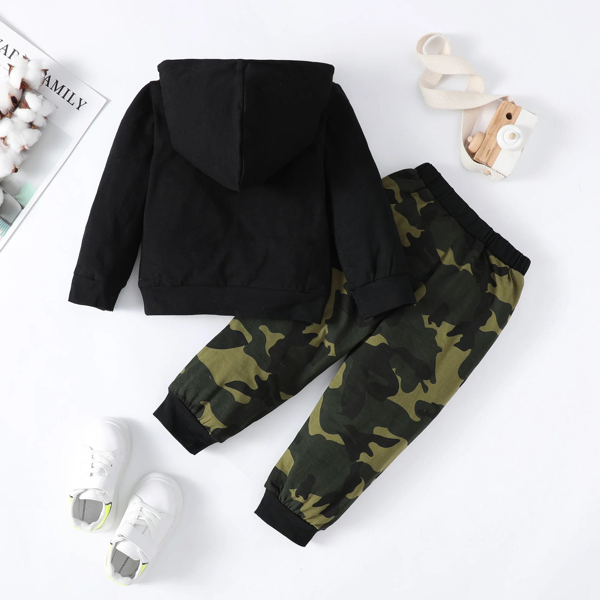 1-6Years Kids Toddler Boy Clothes Set Black Long Sleeved Hoodie+Camouflage Pants Children Baby Fashion Spring Outfit Suit