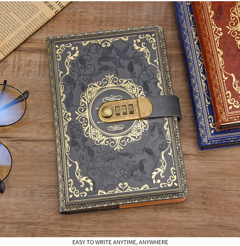 Retro Digital Password Notebook Journal With Lock A5,Diary Perfect for Men and Women-PU Leather Combination Lock Persons Privacy