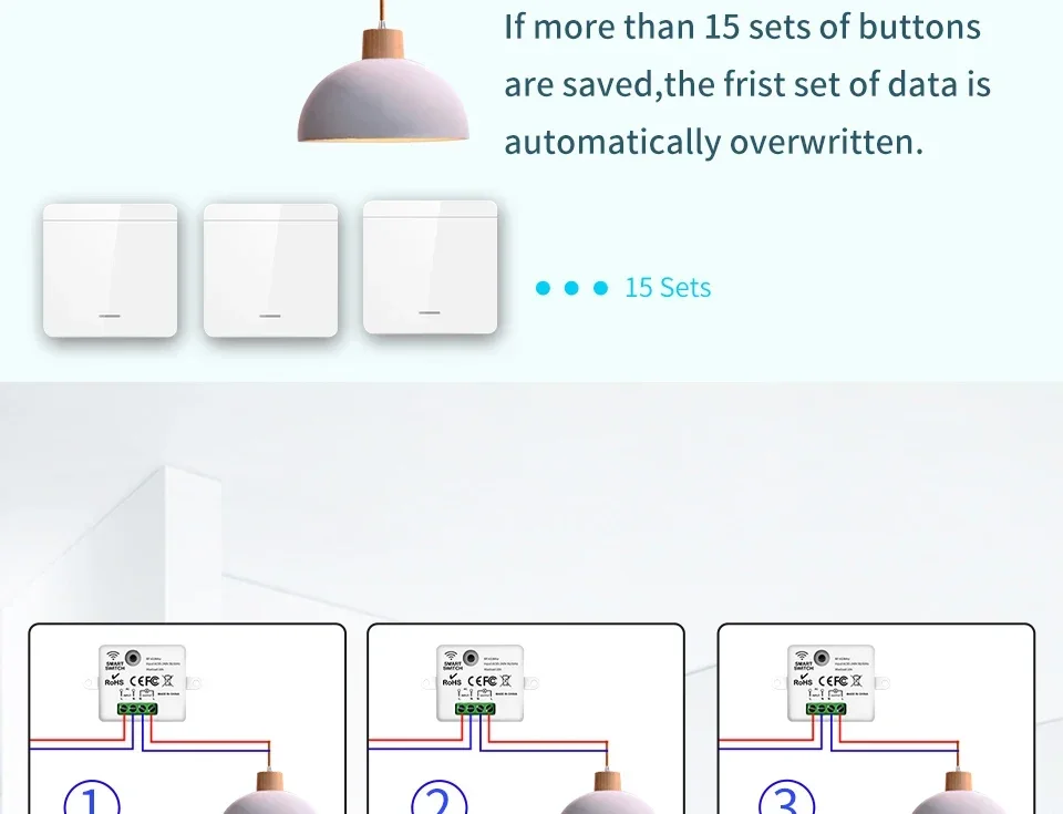 3.It is a 86 wall panel that can be stuck onto anywhere. It is a learning code transmitter EV1527 IC Chip. It can be learned into most of the learning code receiver.