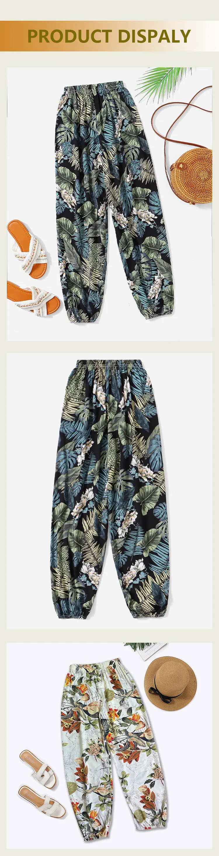 Women Casual Loose Cozy Pants Elastic Pants Feet Harem Pants Sweatpants Pants Summer Beach Pants Elastic Waistband