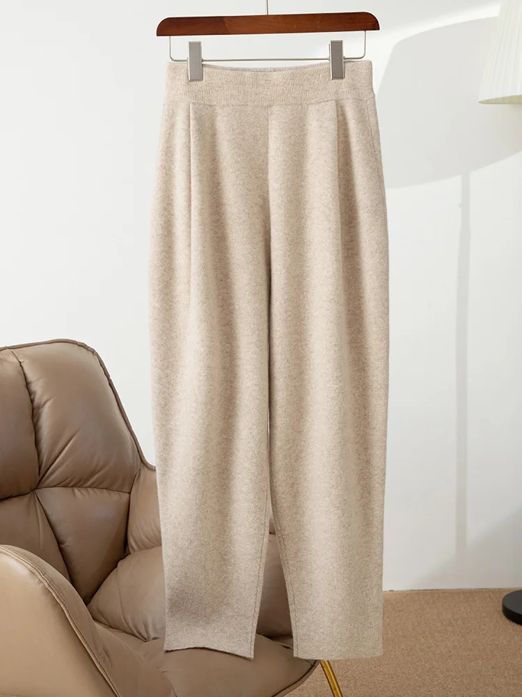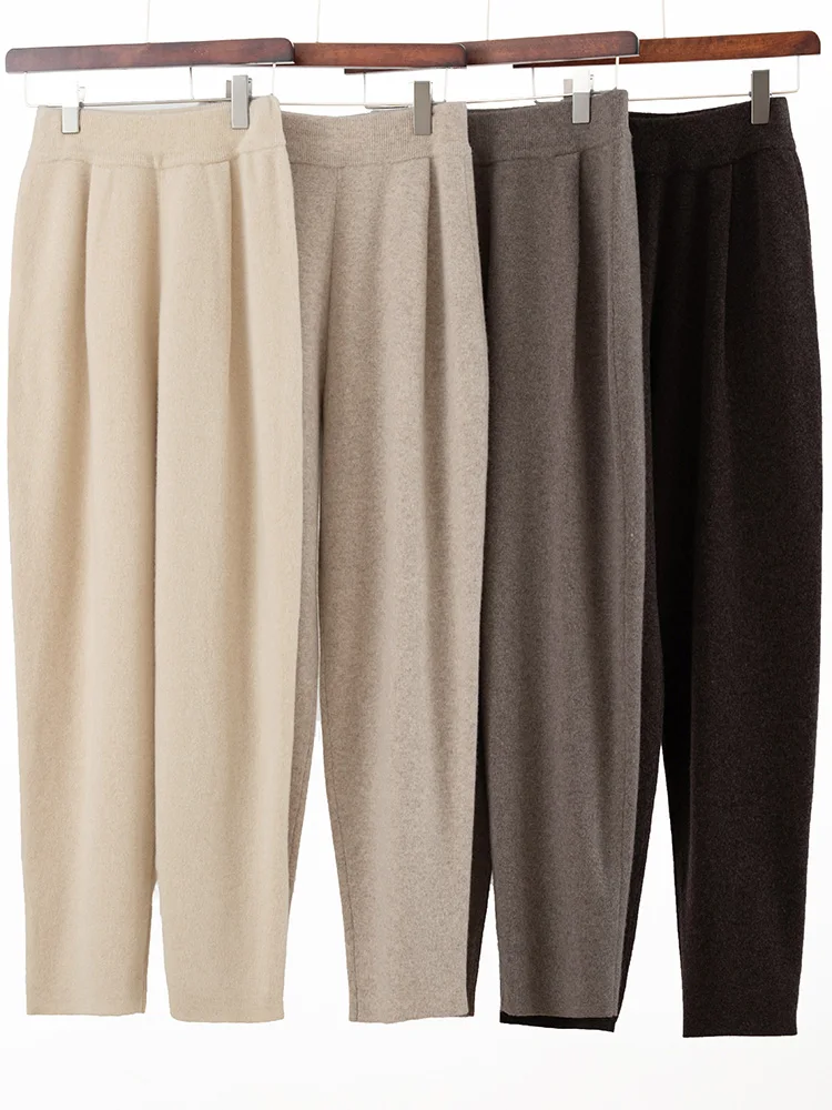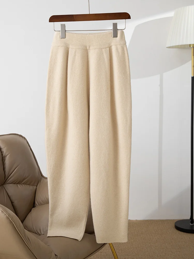 100% merino wool women's knitted trousers, popular, warm, creased, harem pants 2024 autumn and winter new style