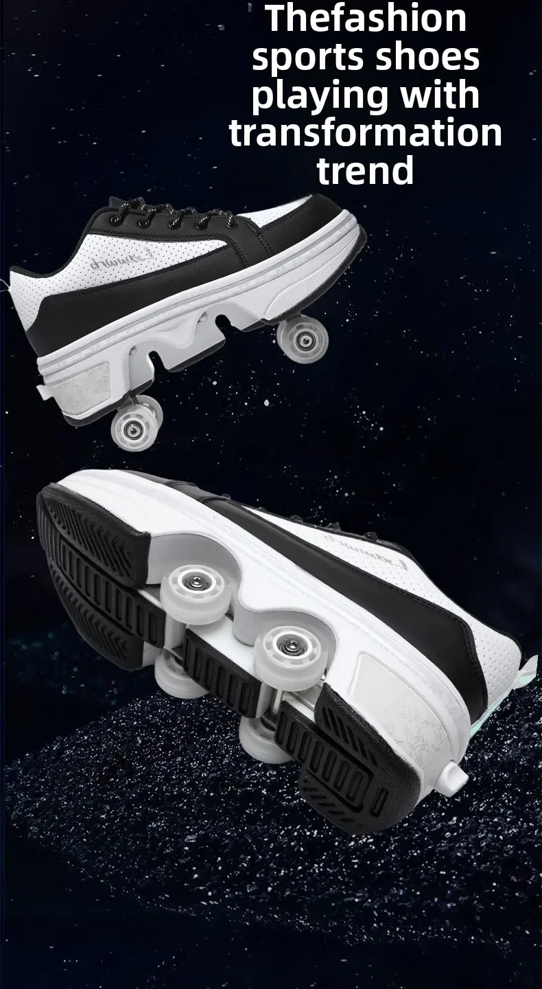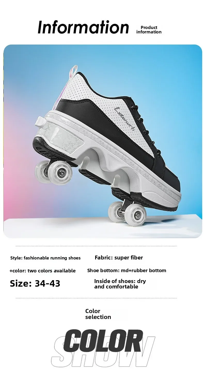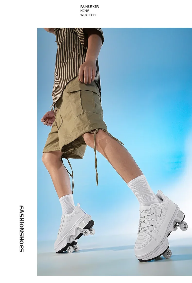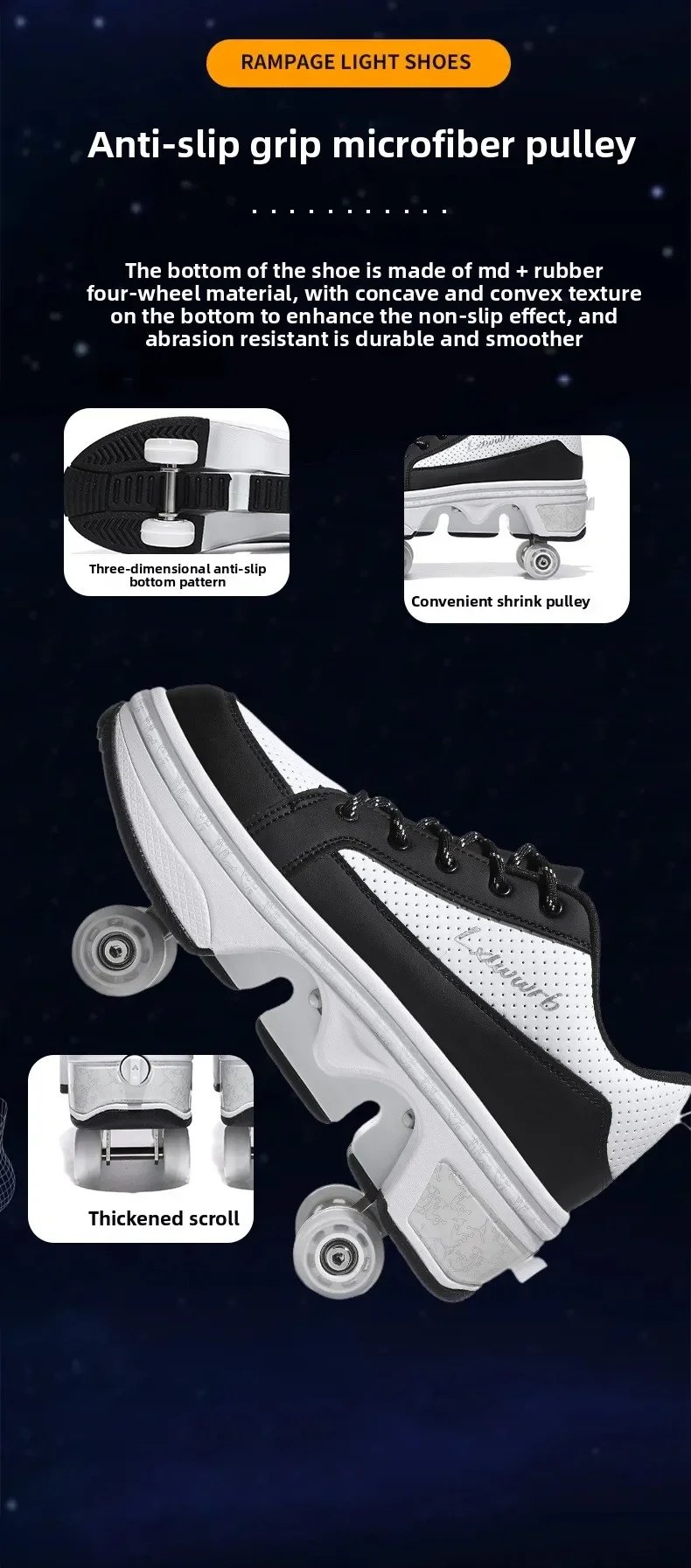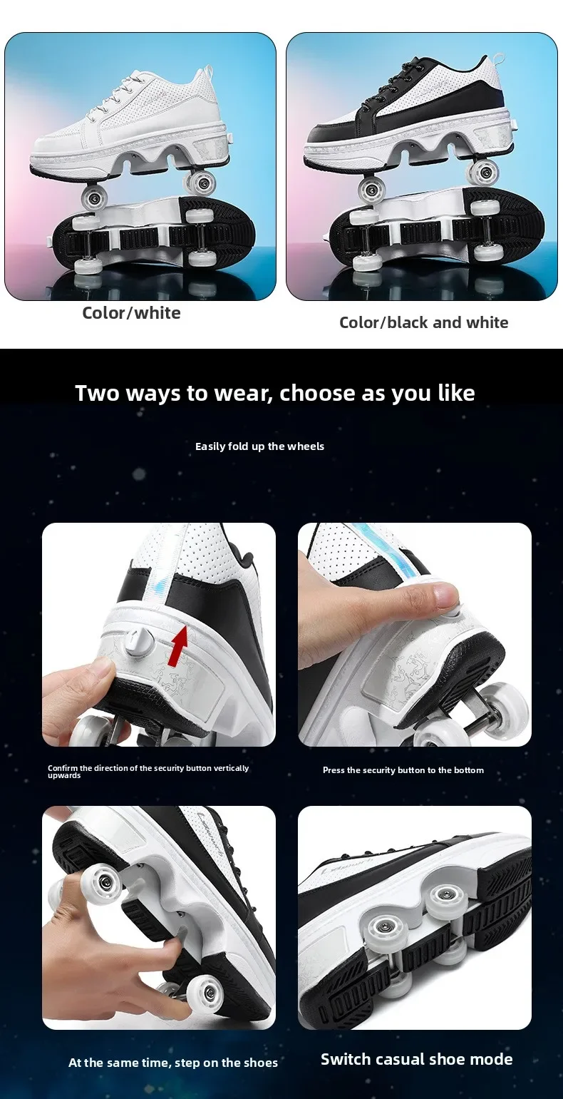 4 Wheel Dual-Use Roller Skates Retractable Wheels Racing Roller Shoes Children's Shoes with Wheels Speed Skate Skateboard Shoes
