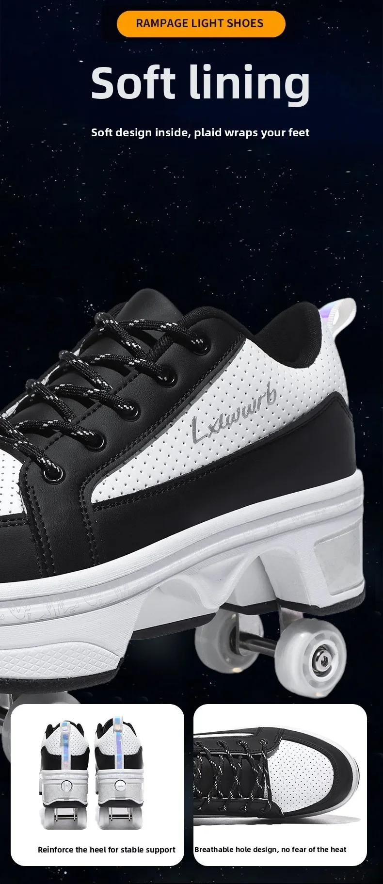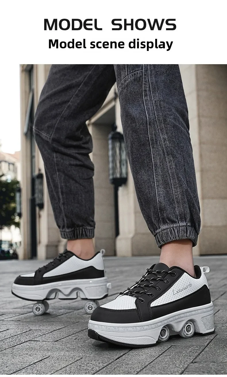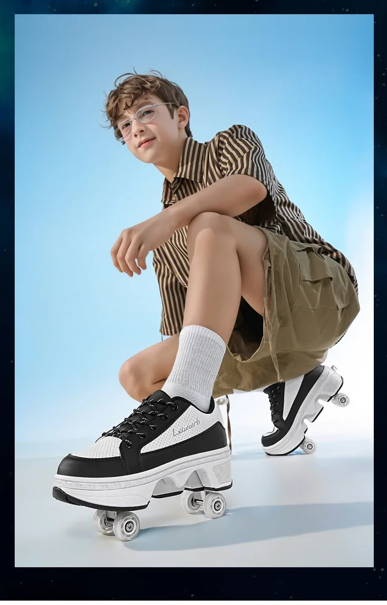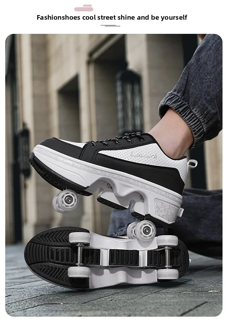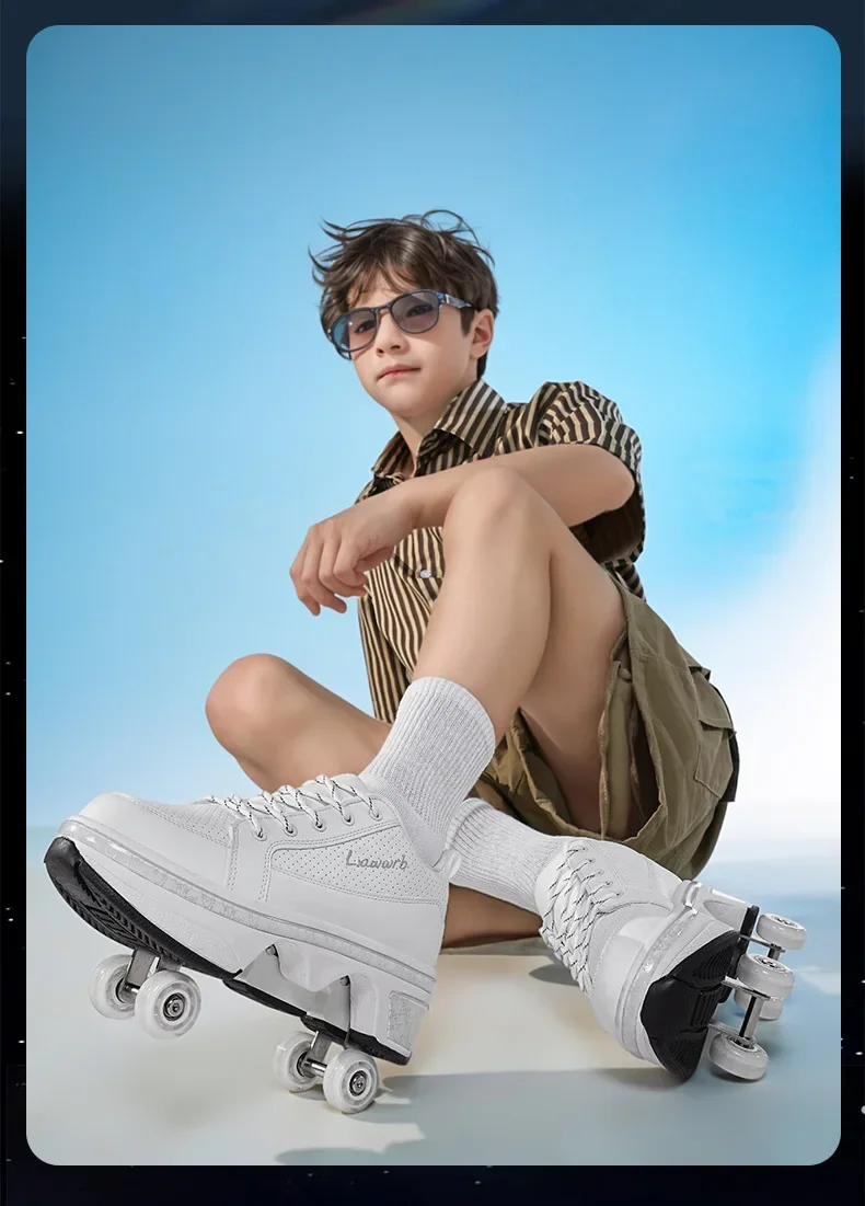 4 Wheel Dual-Use Roller Skates Retractable Wheels Racing Roller Shoes Children's Shoes with Wheels Speed Skate Skateboard Shoes
