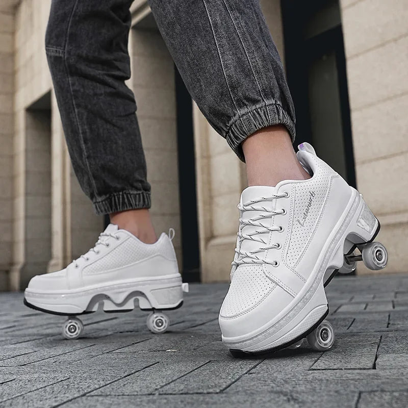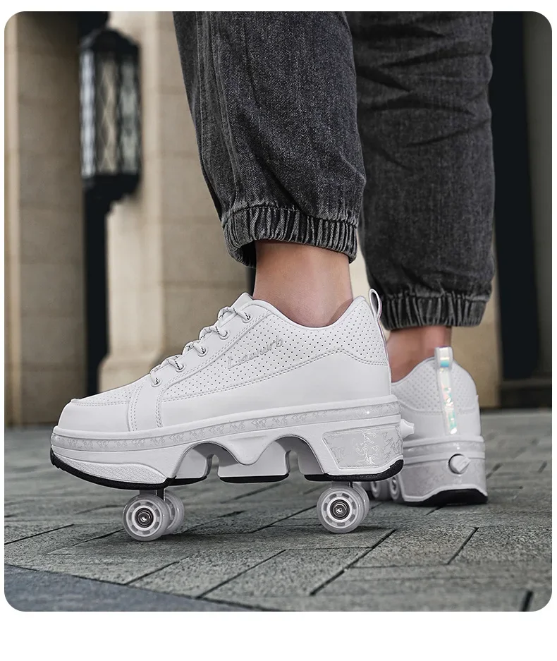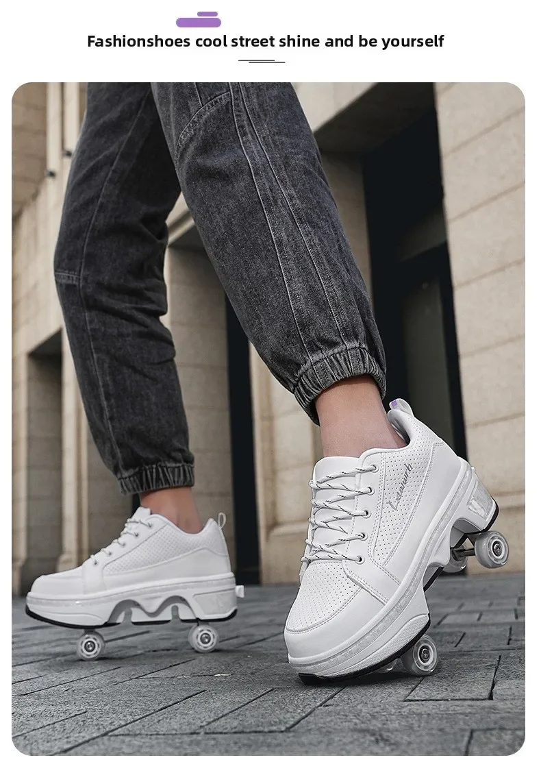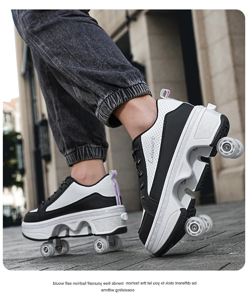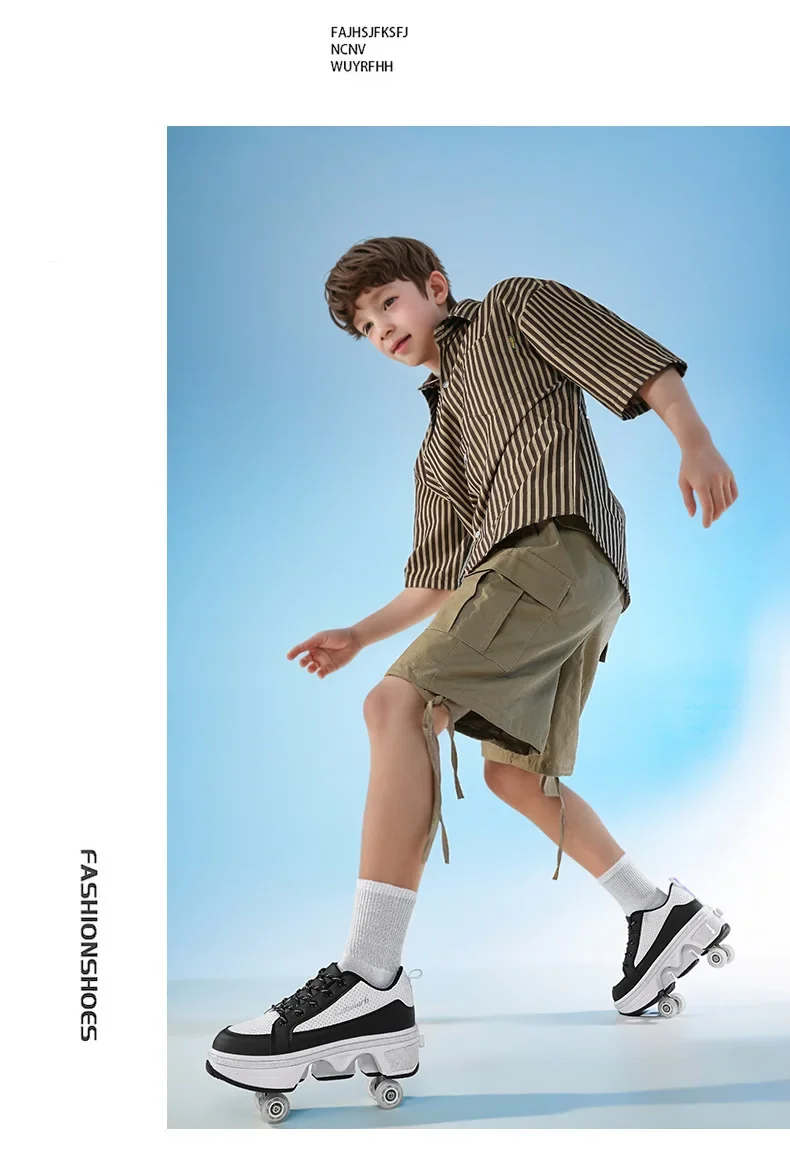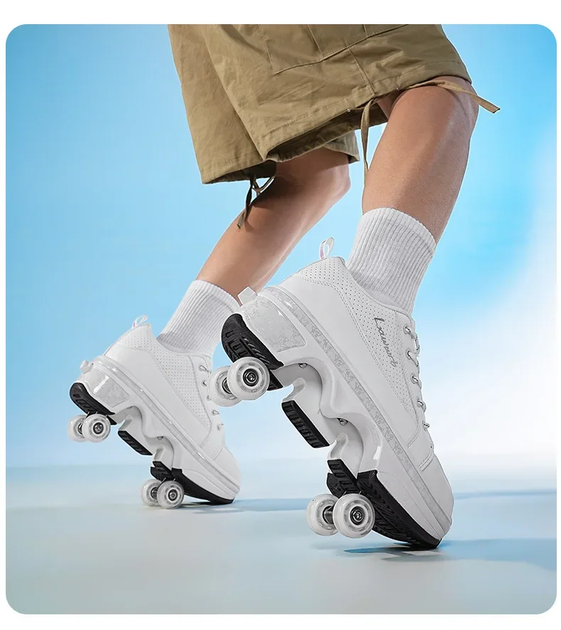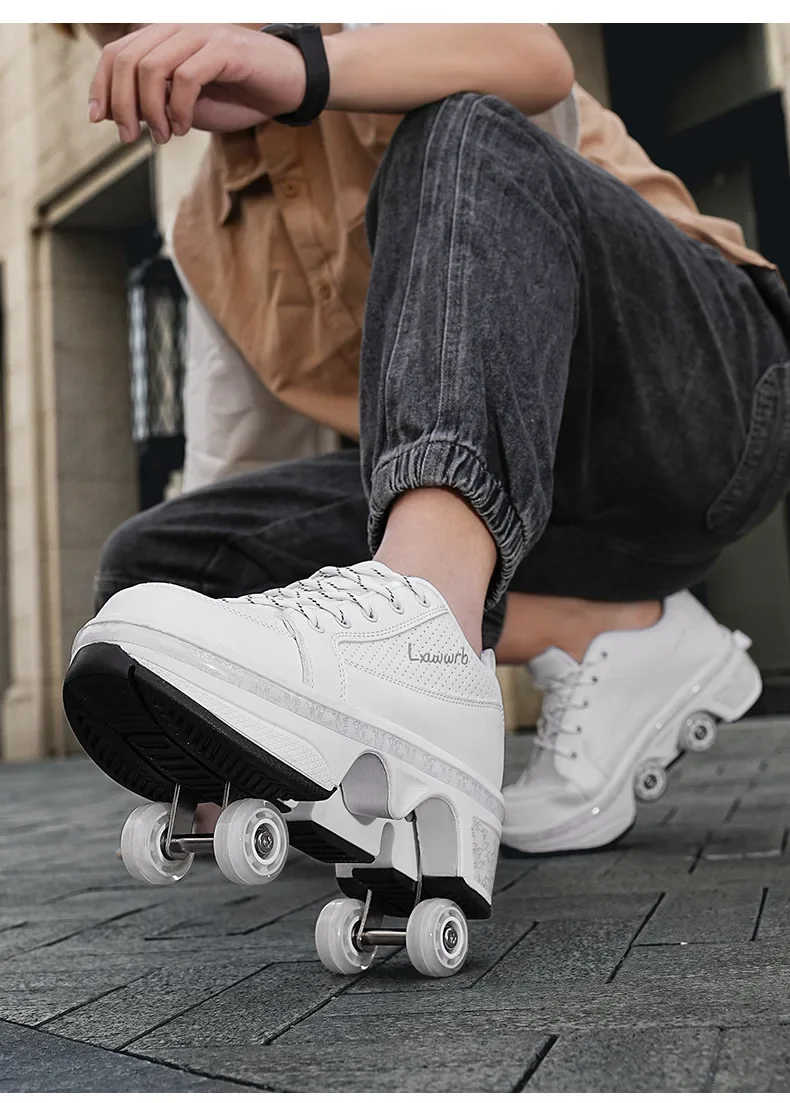 4 Wheel Dual-Use Roller Skates Retractable Wheels Racing Roller Shoes Children's Shoes with Wheels Speed Skate Skateboard Shoes