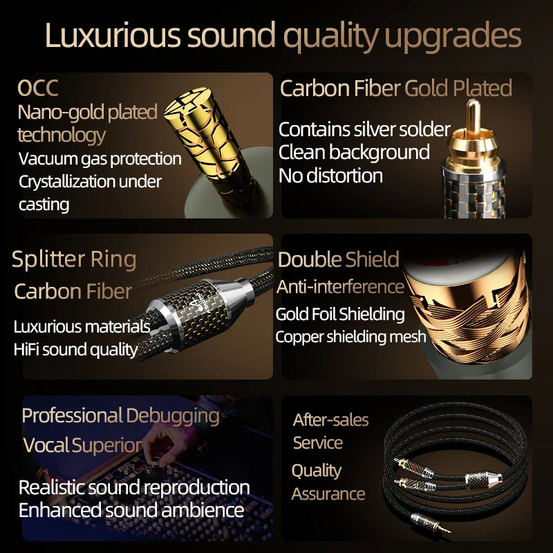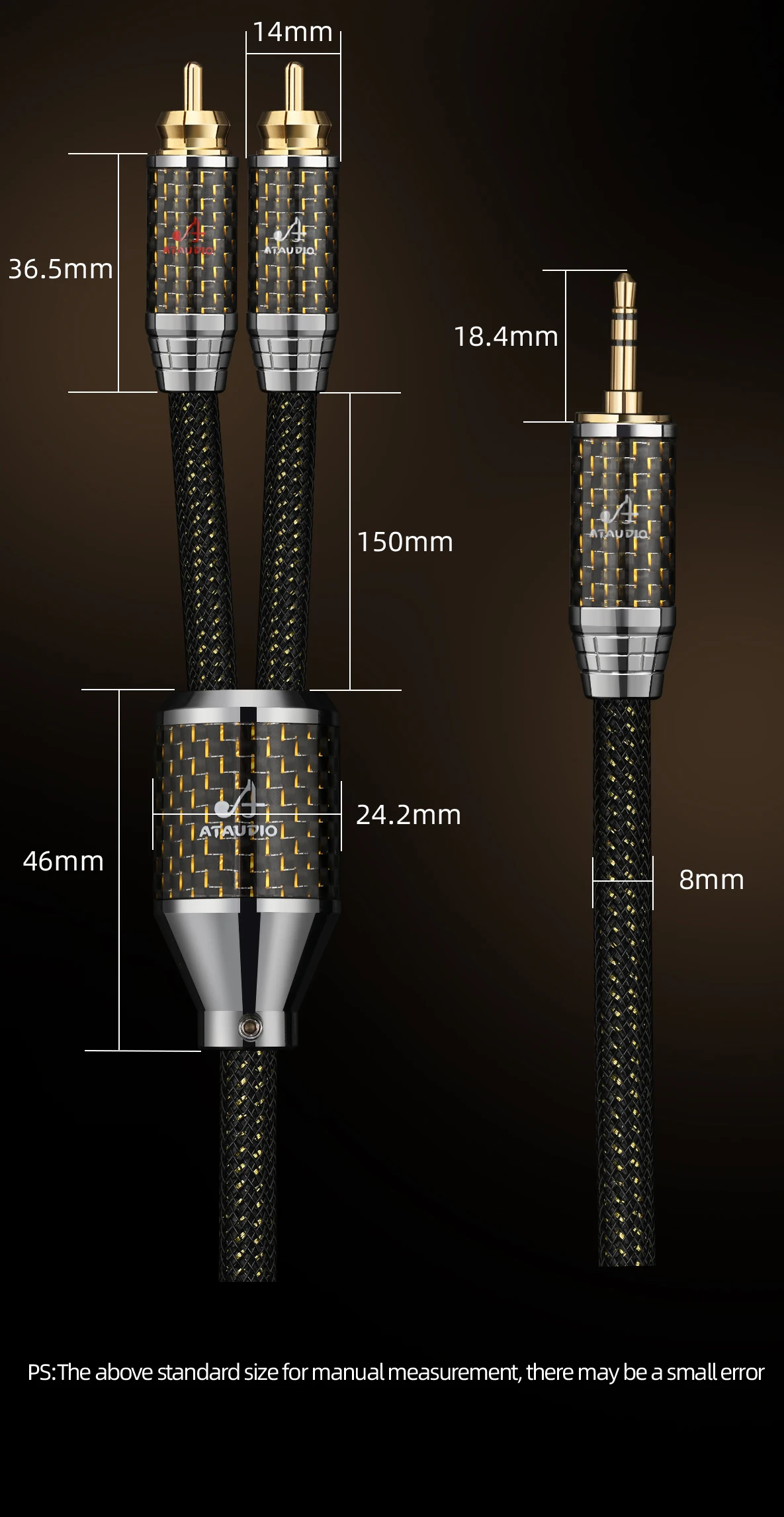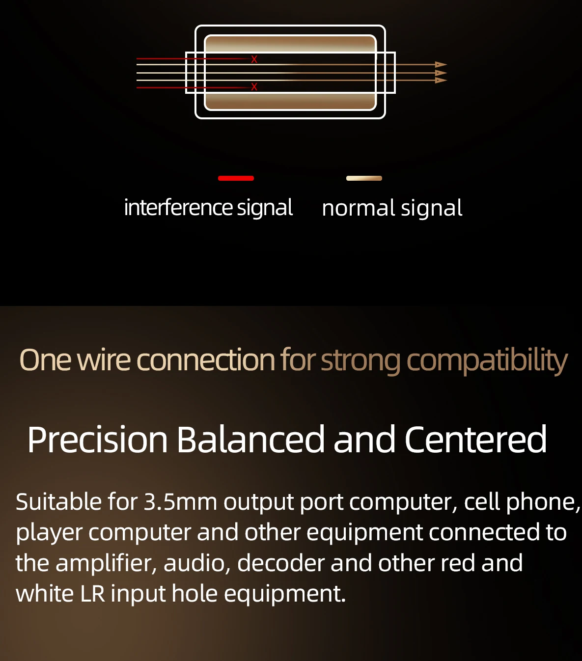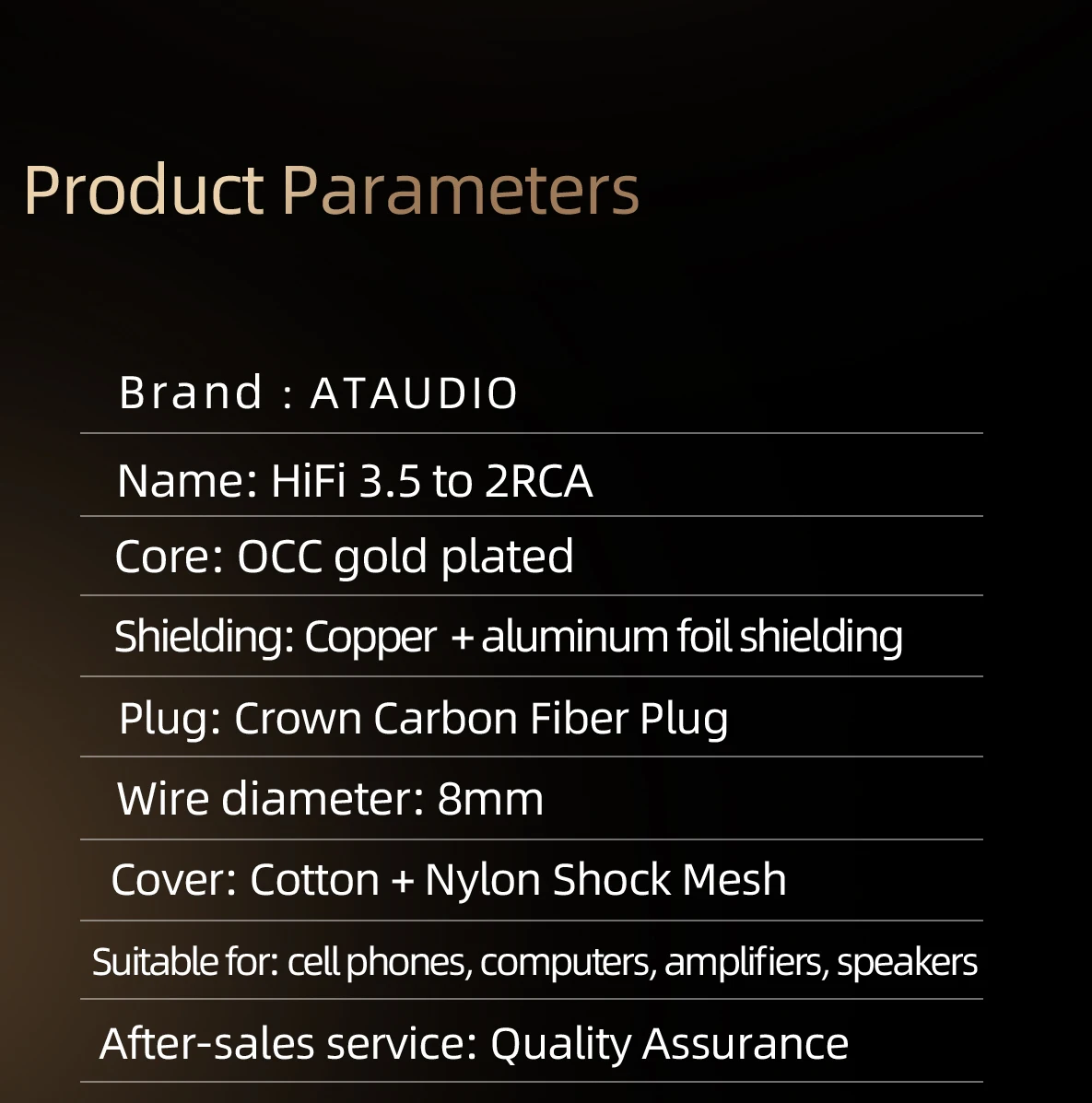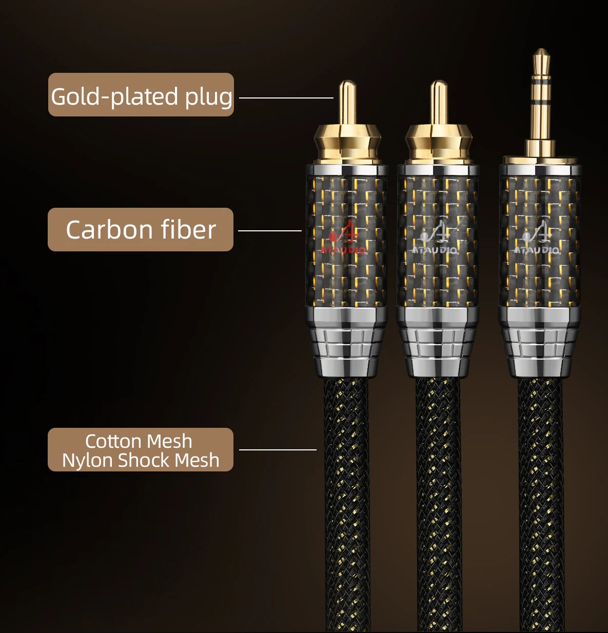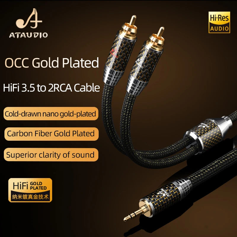 Audio Cable HiFi 3.5 to 2RCA Cord High Quality OCC Gold-plated Core 3.5mm to Dual RCA Male Jack Cable for HiFi Systems Amplifier