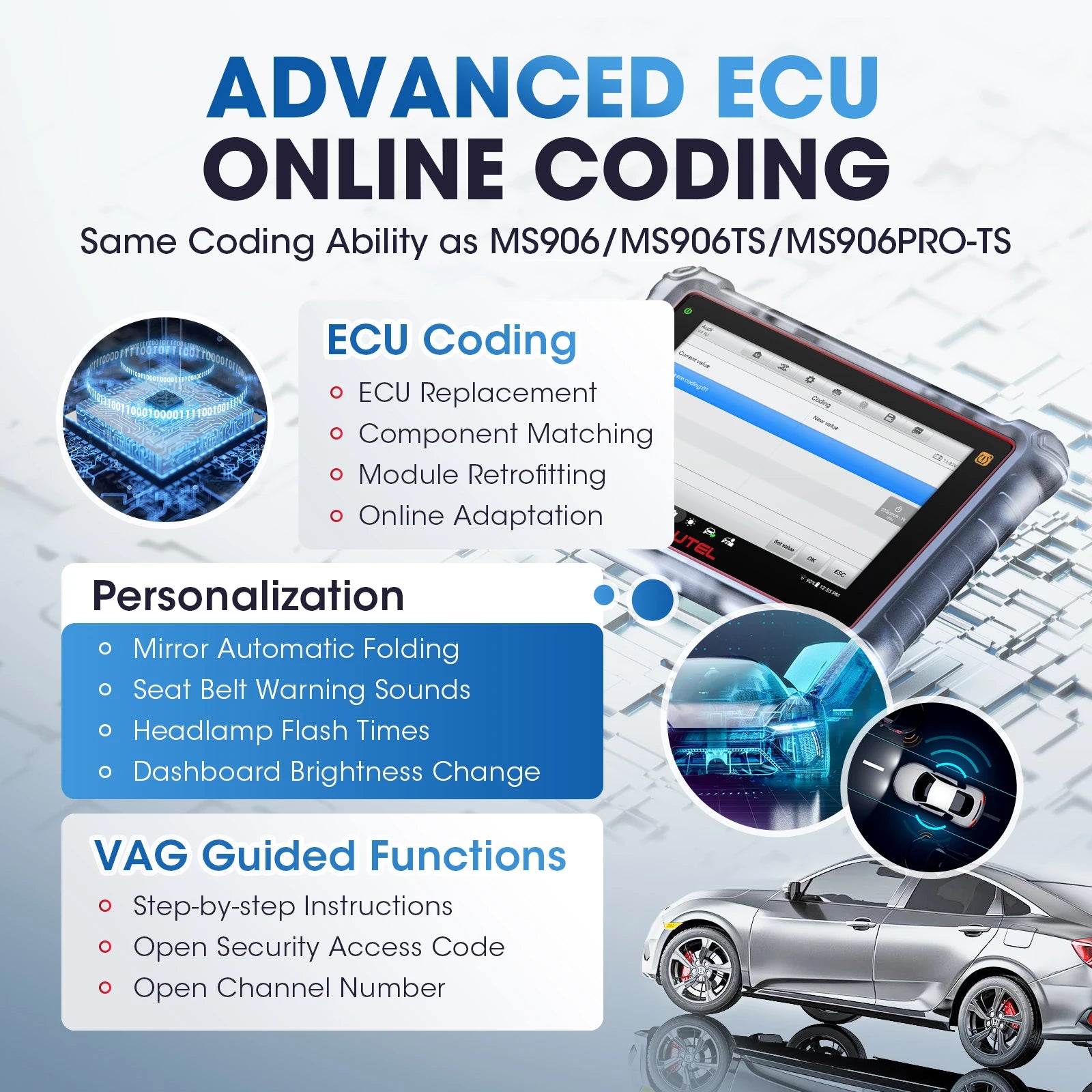 4.OE ECU Coding: Same as MS906 but more cost-effective. Provide online coding, offline coding & adaptation, personalization, customization, modification, etc.