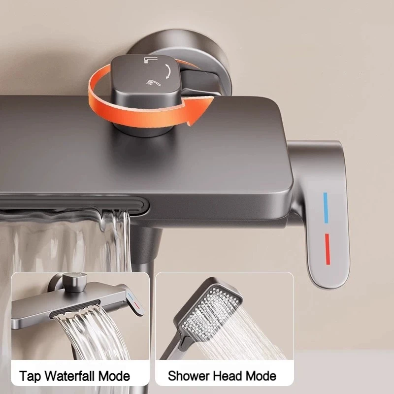 Bathroom Waterfall Bathtub Faucet With Hand-held Shower Head Wall Mounted Hot and Cold Mixer Tap Shower Set Single Handle