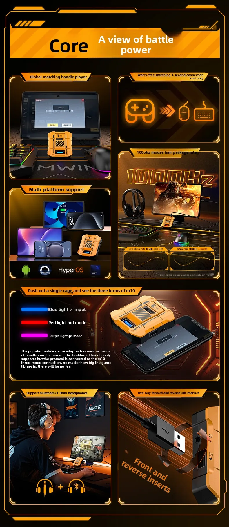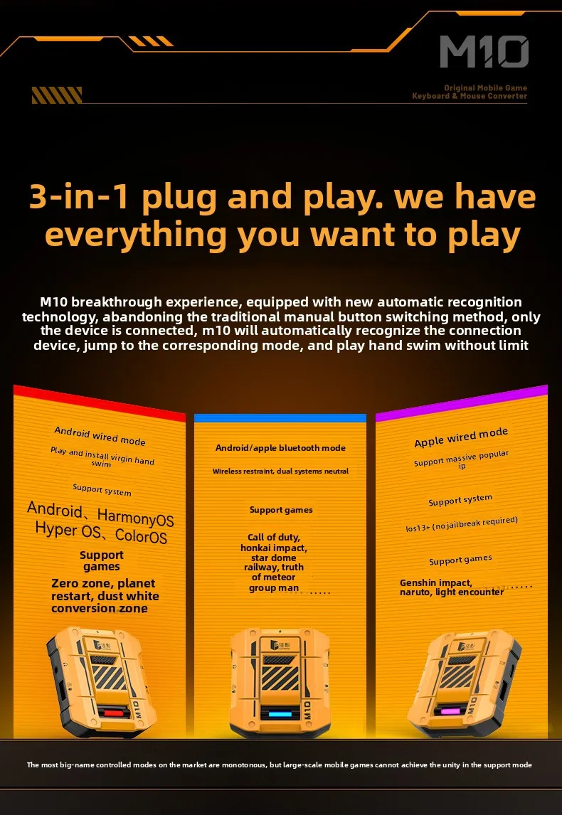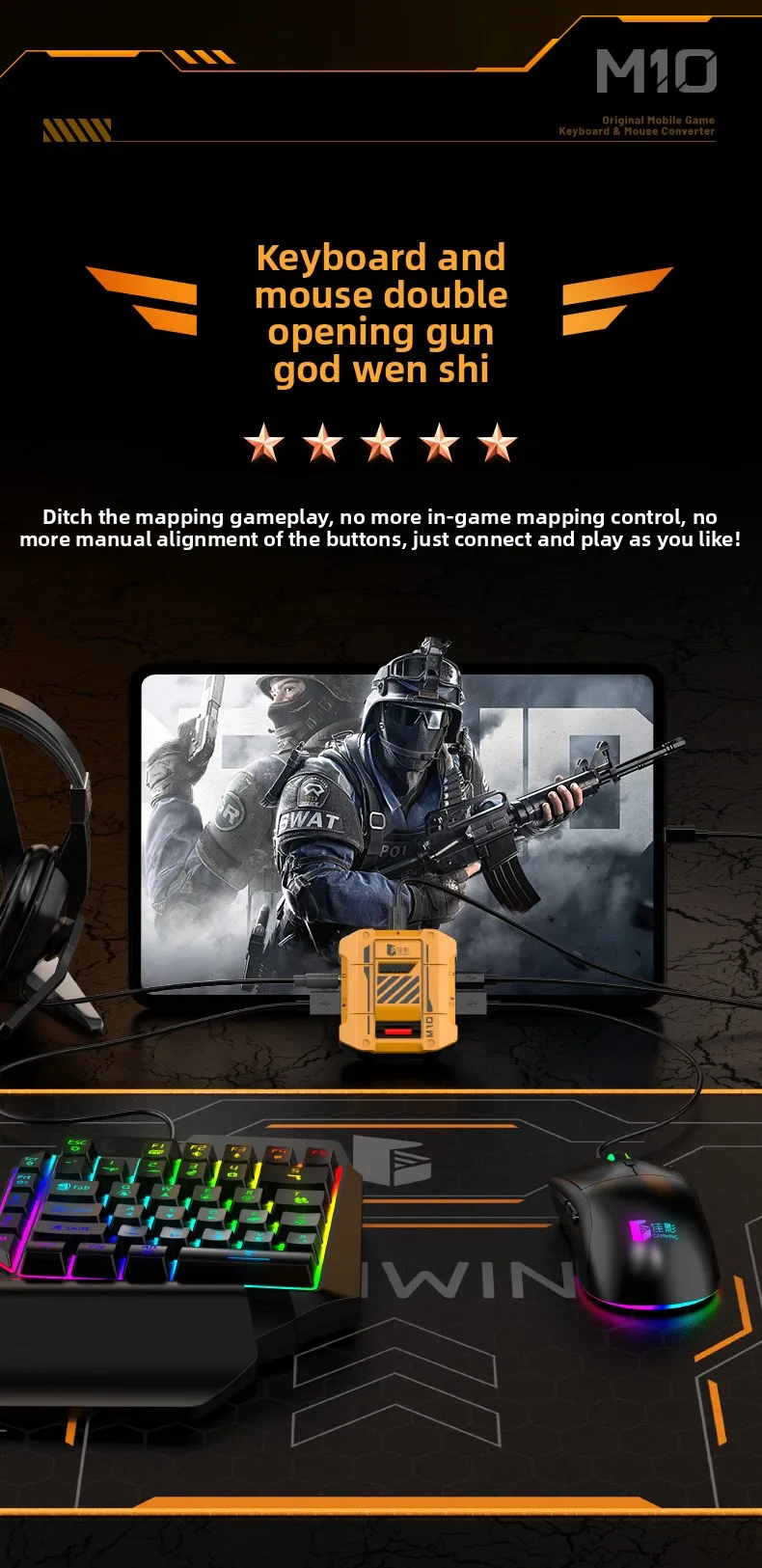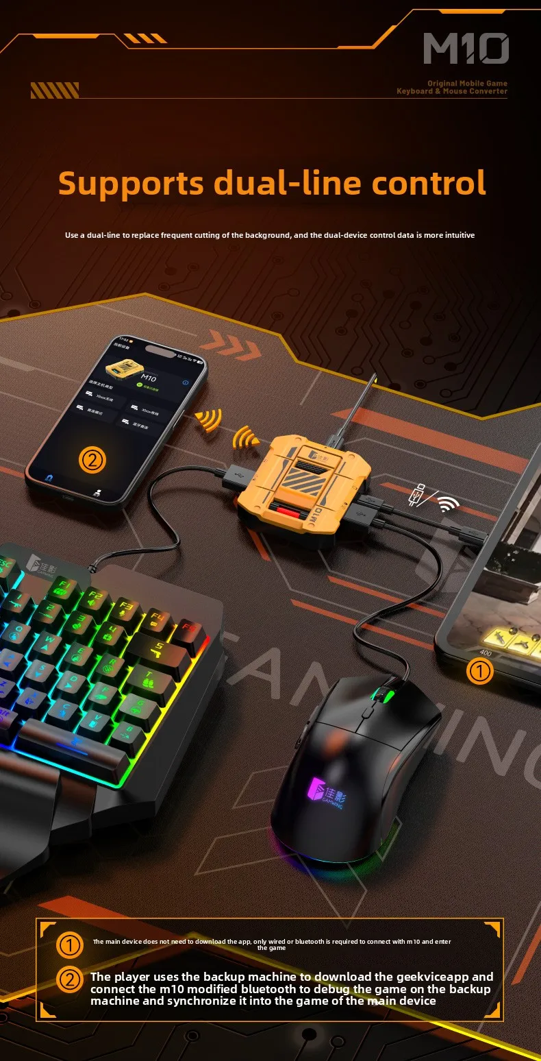 Gamwing M10 Mobile Game Keyboard &Delta Force Mouse Controller Converter Adapter for Native Games Call of Duty for Android & iOS