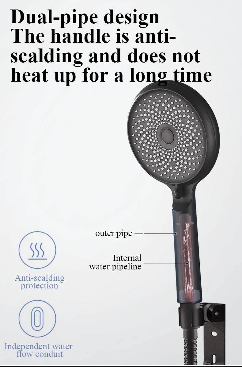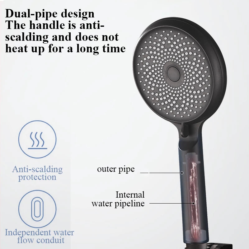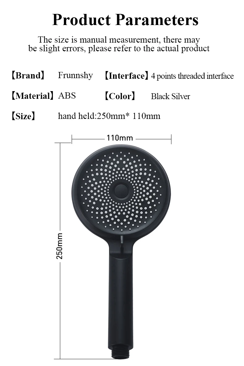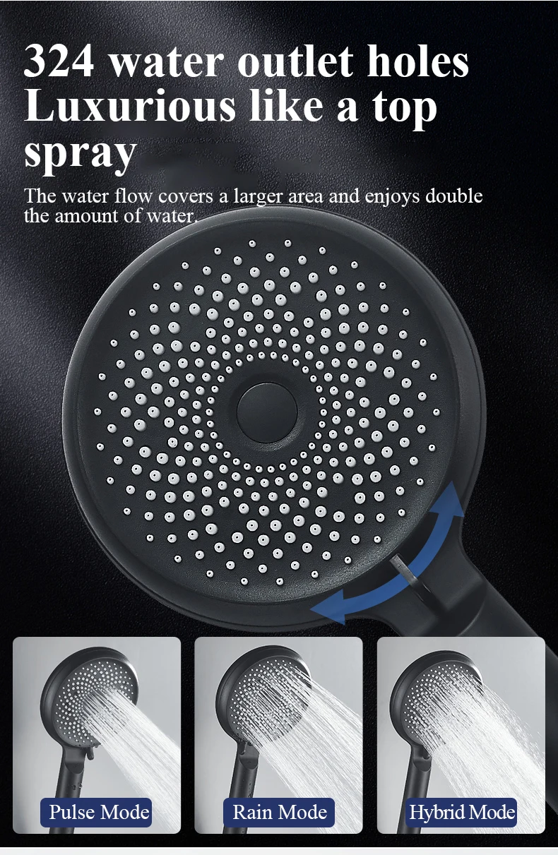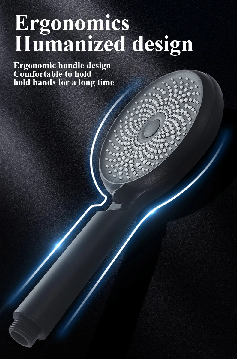 Shower Head 3 Mode Rainfall ABS Round High Pressure Turbo Spray Nozzle Adjustable Black Eco Shower Bathroom Accessories FR102