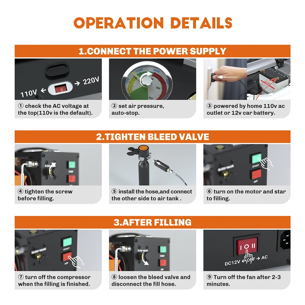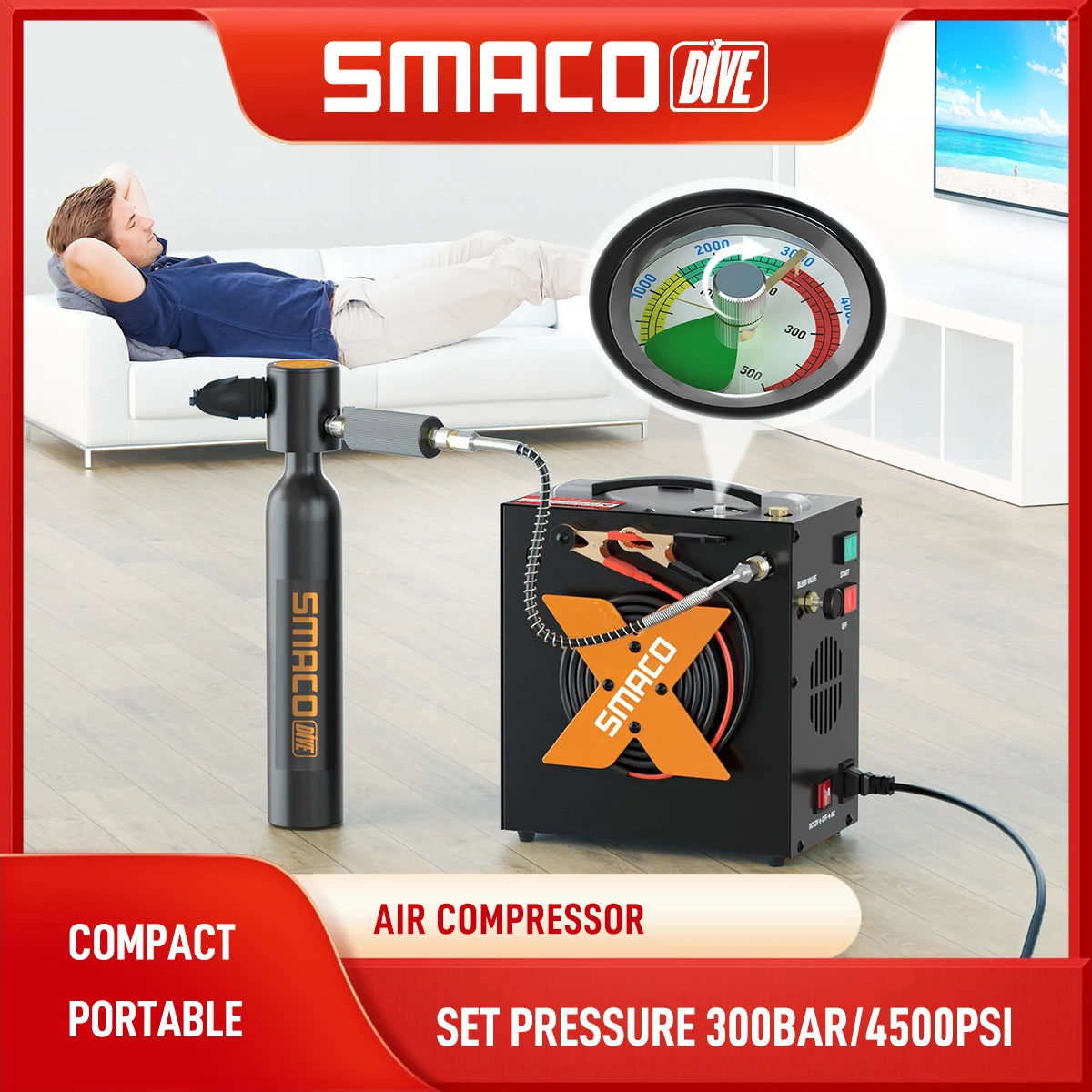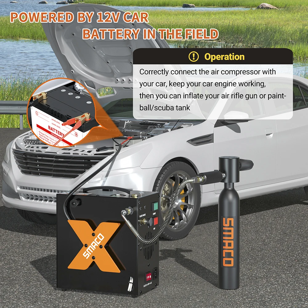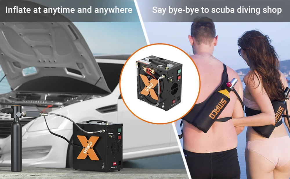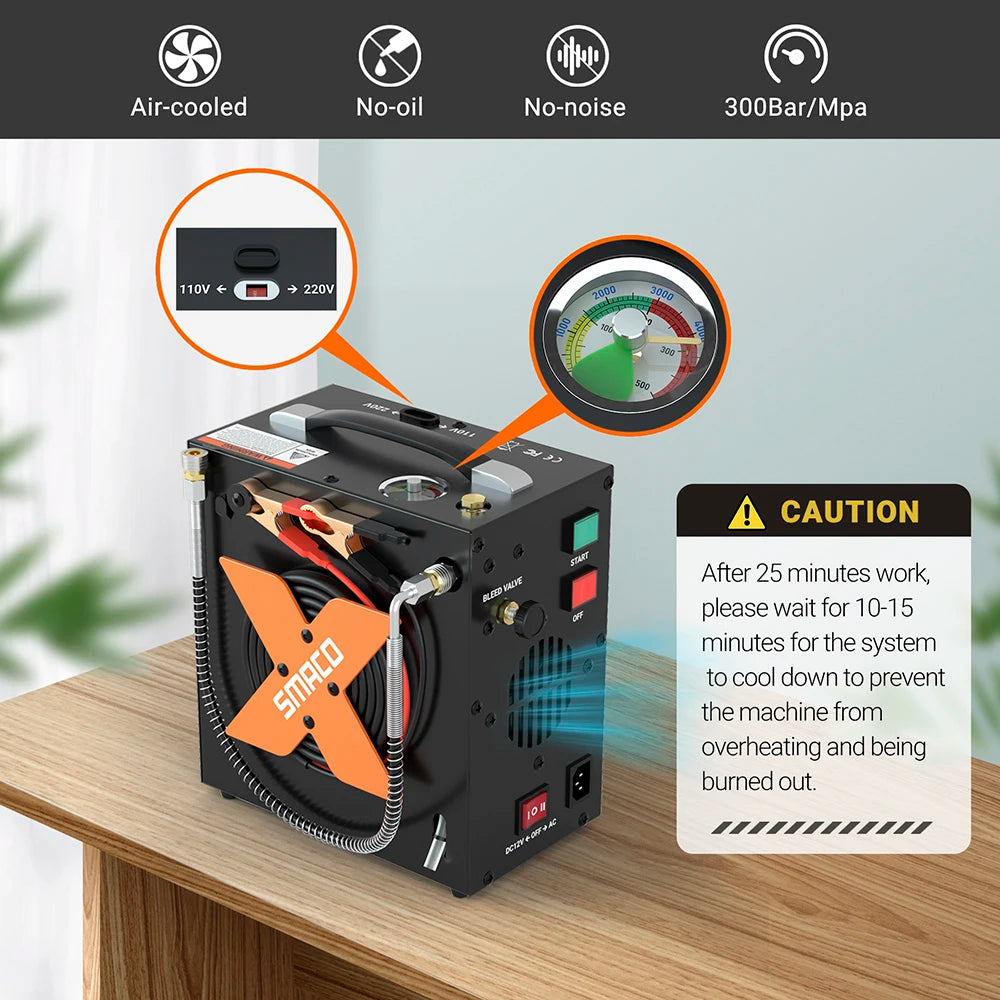 SMACO Air Compressor 4500psi/30mpa High Pressure Air Compressor Scuba Tank Hpa Pump Oil Free 12v Dc 220v Ac Water/Oil Separator