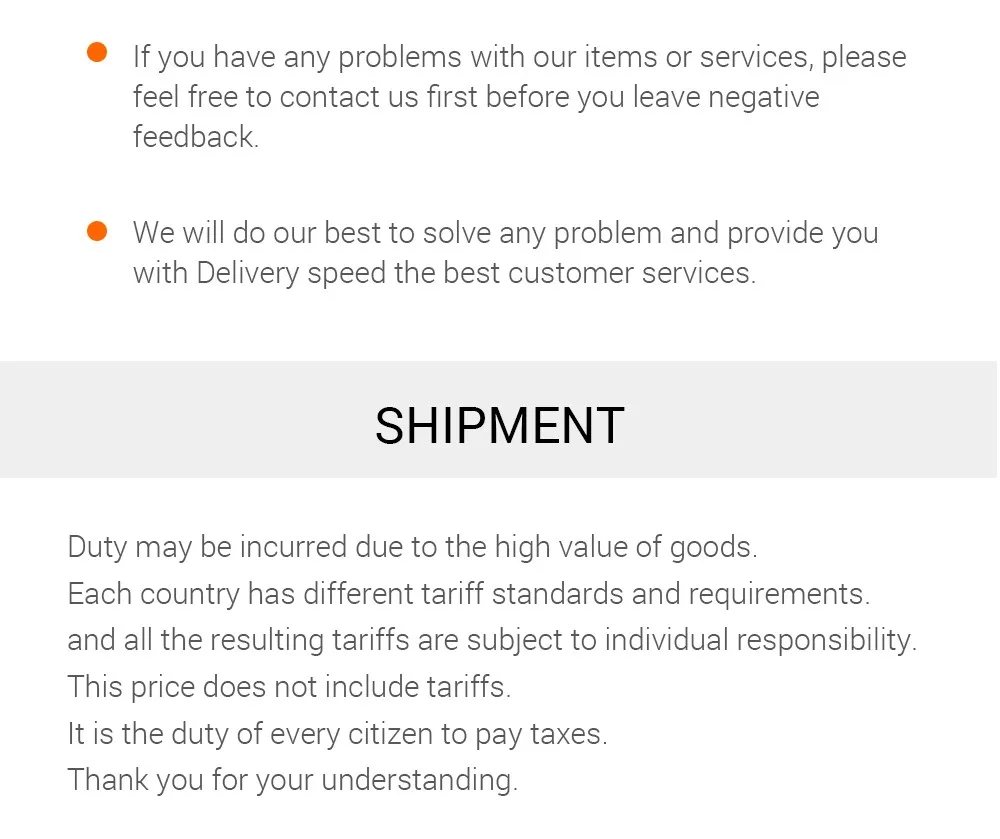4. We Do Not Cover Any Tax and Duty! Buyers are Responsible For Duty/Taxes.