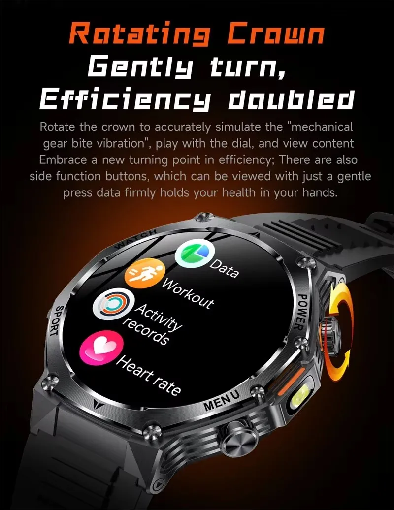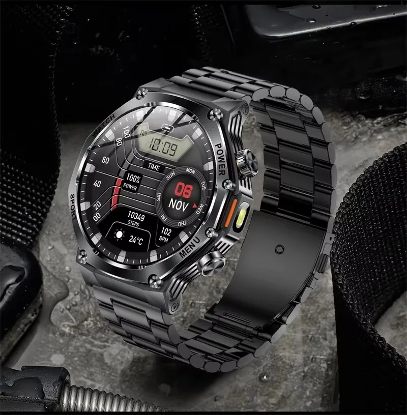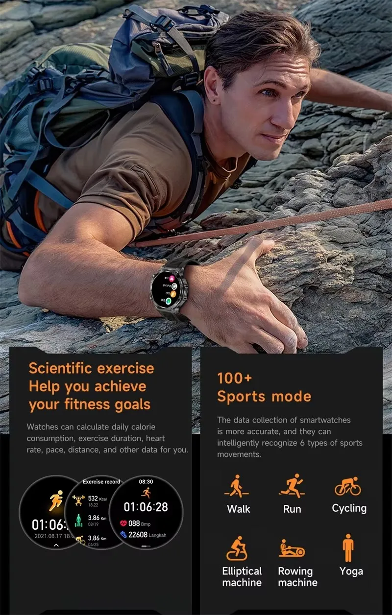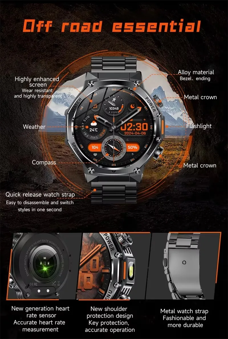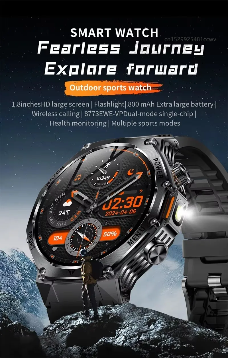 Smart Watch AK82 Men Outdoors Sports Fitness Tracker LED Flashlight BT Calling Health Monitoring 800Mah Large Battery Smartwatch