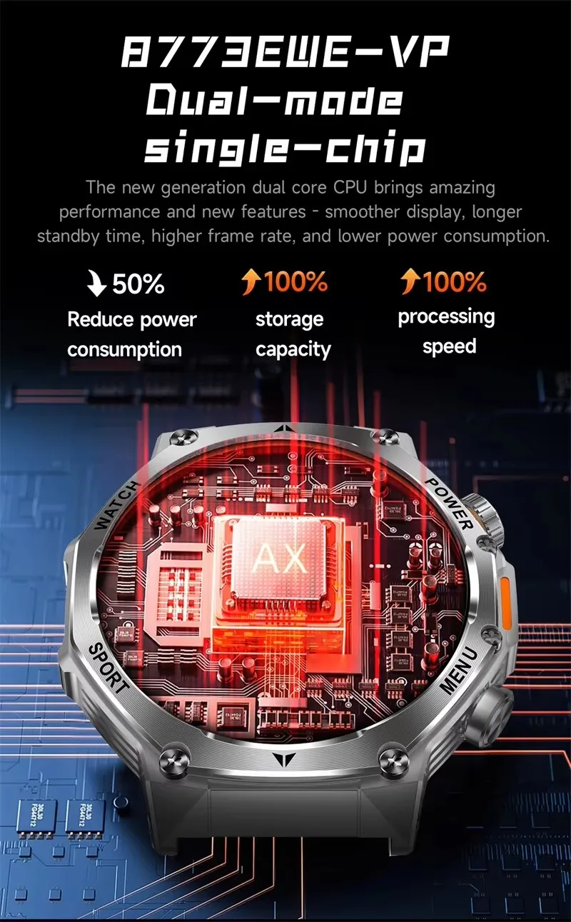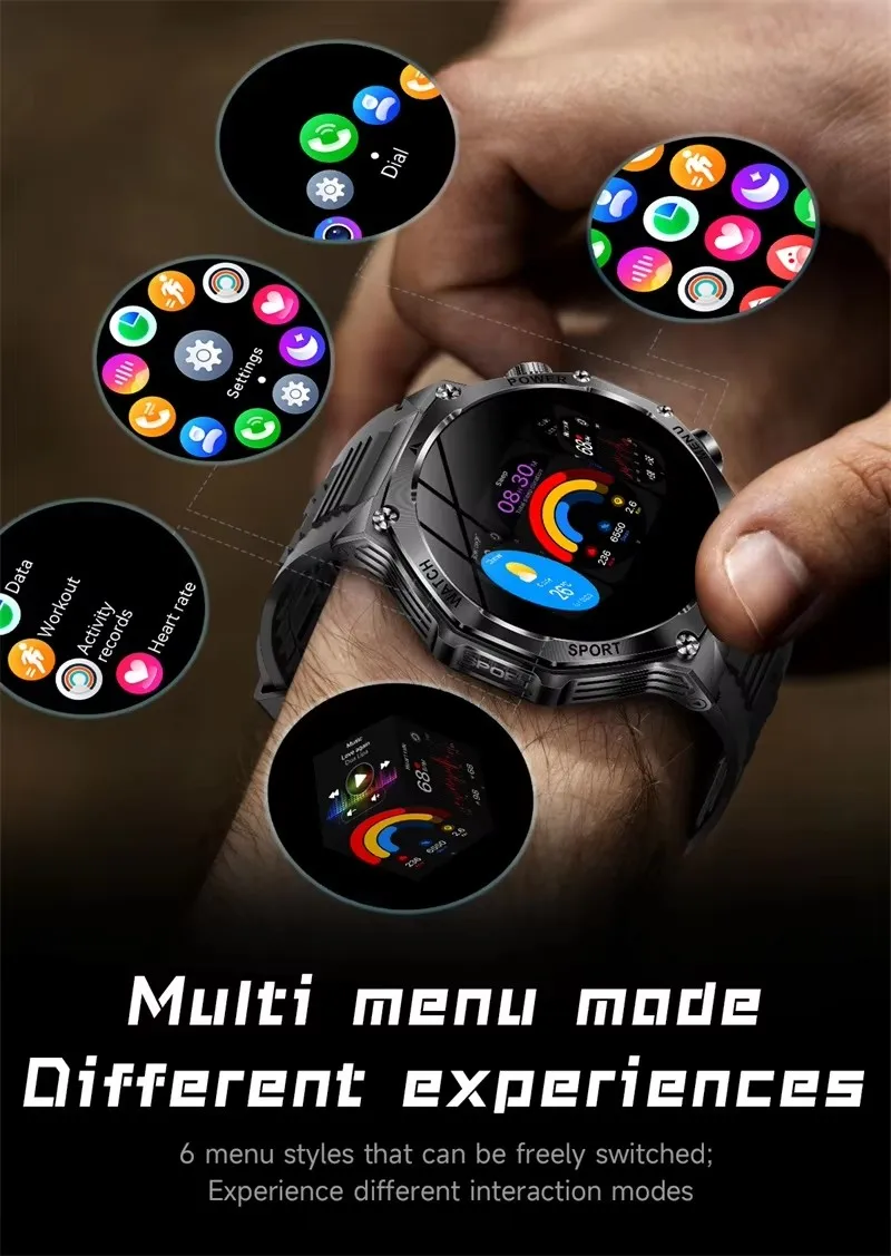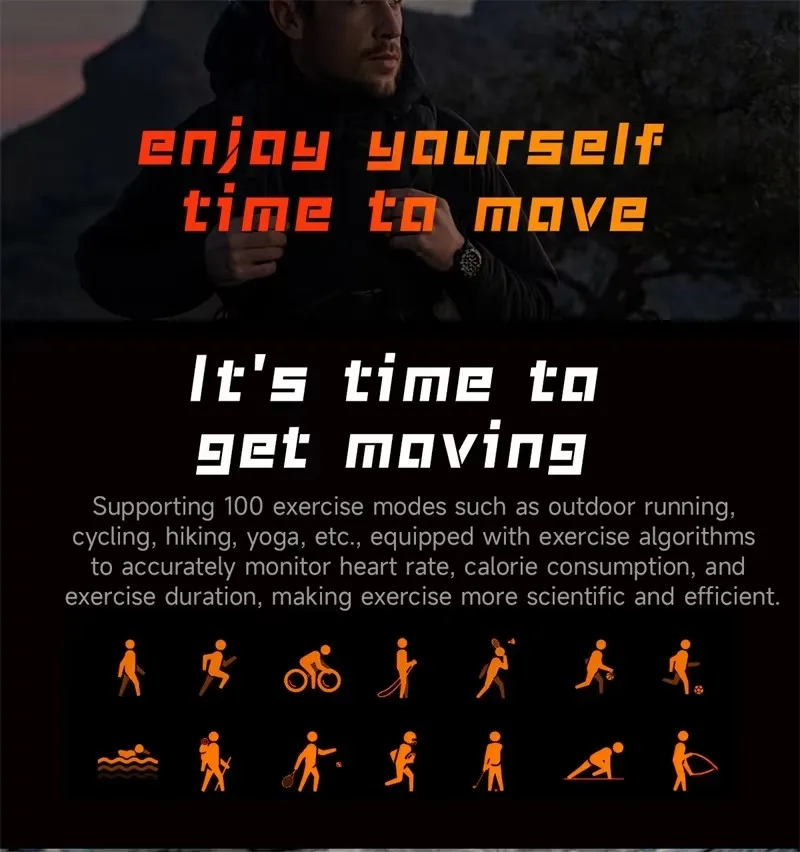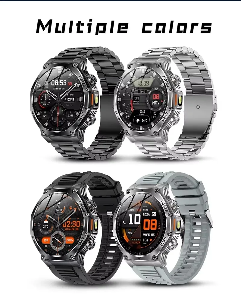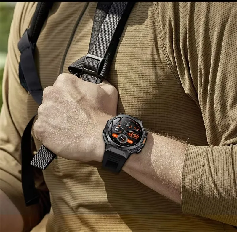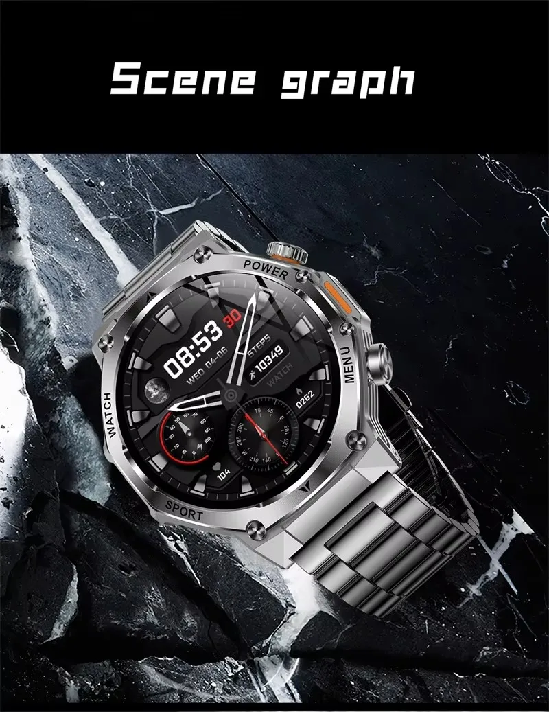 Smart Watch AK82 Men Outdoors Sports Fitness Tracker LED Flashlight BT Calling Health Monitoring 800Mah Large Battery Smartwatch