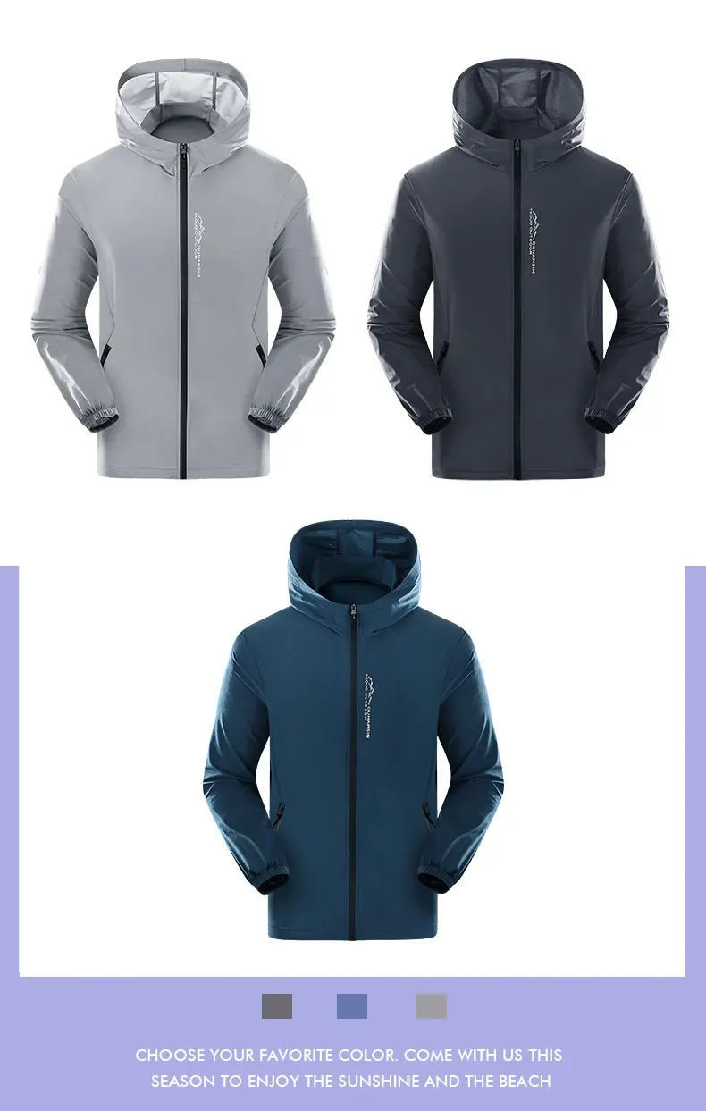 Summer Outdoor Reflective Coats Quick Dry Sun-Protective Thin Jacket Men Hiking Fishing Cycling Hooded Gym Sport Windbreaker