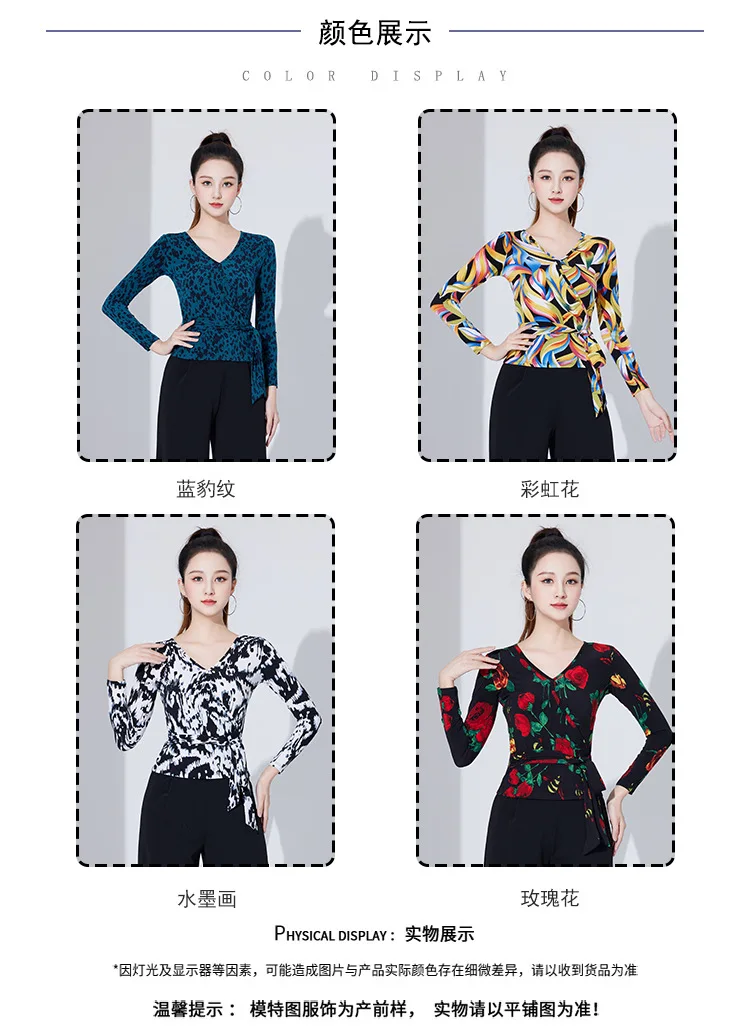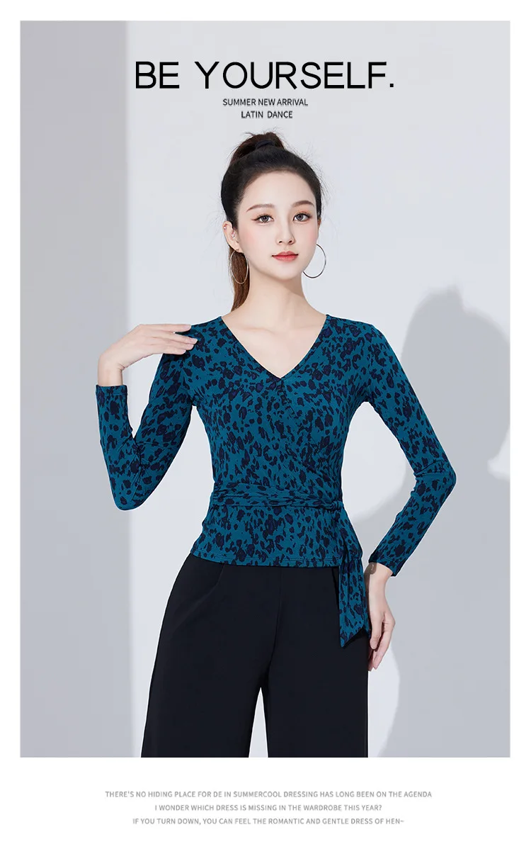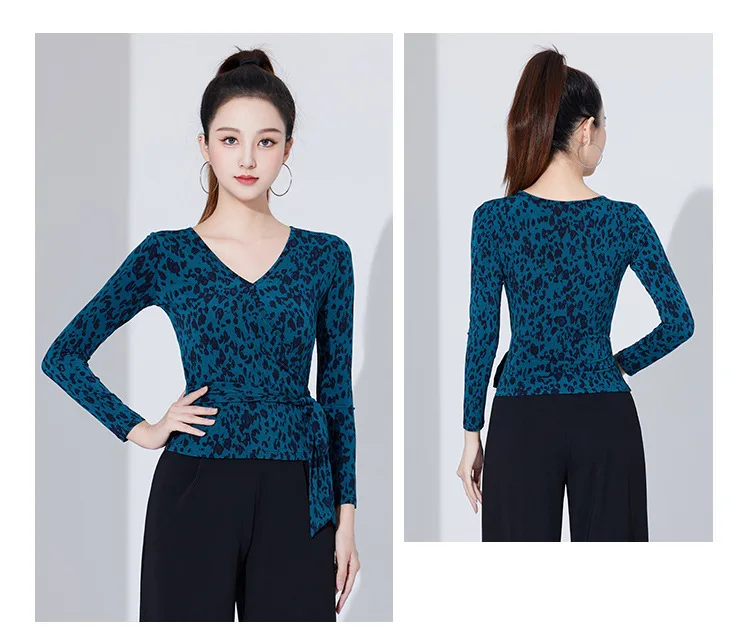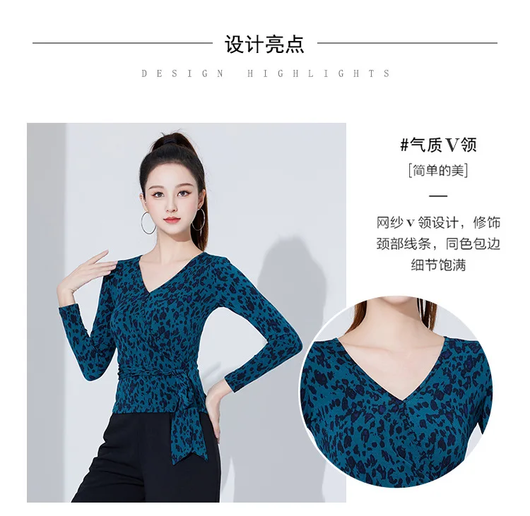 Top Female Adult Long Sleeve Latin Dance Dress Modern Dance Social Dress National Standard Practice Costume ropa mujer