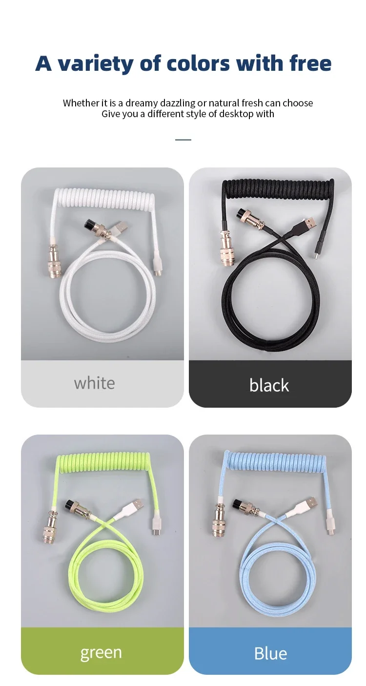 3M Type C Mechanical Keyboard Coiled Cable USB Keyboard Wire Mechanical Keyboard Aviator Desktop Computer Aviation Connector