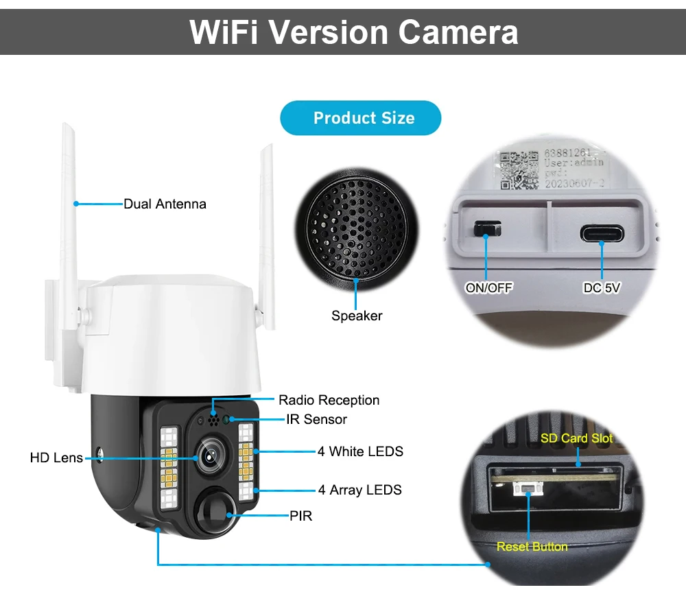 4G Version Camera: only support 4G network via 4G SIM Card, not support 2.4Ghz&5Ghz WiFi.