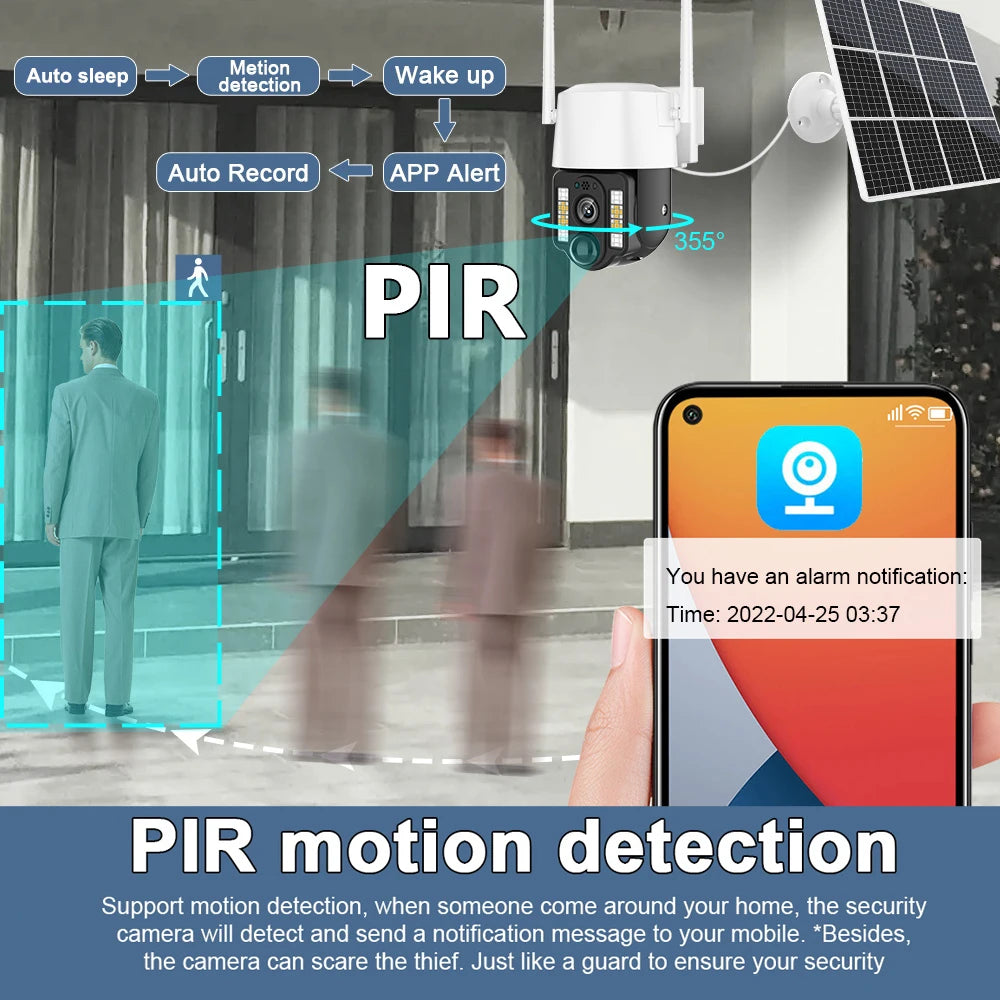 4G/WiFi Solar Camera Outdoor Waterproof IP Camara PIR Human Detection CCTV Security Protection Built in Battery With Solar Panel
