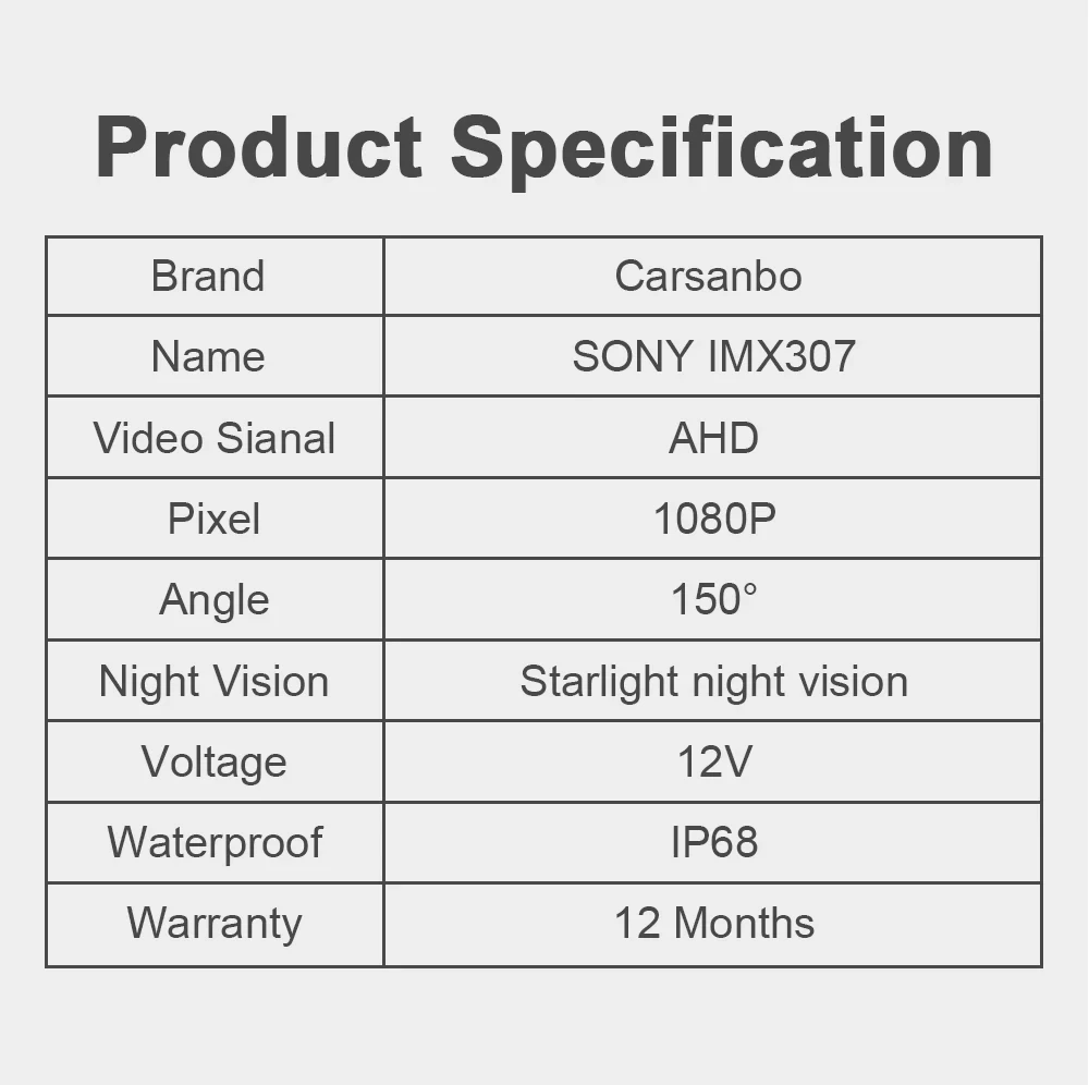Carsanbo Car AHD Reversing Rear View Camera WDR Night Vision Reversing Parking Camera 360 Degree Rotatable 1080P IMAX307 Camera