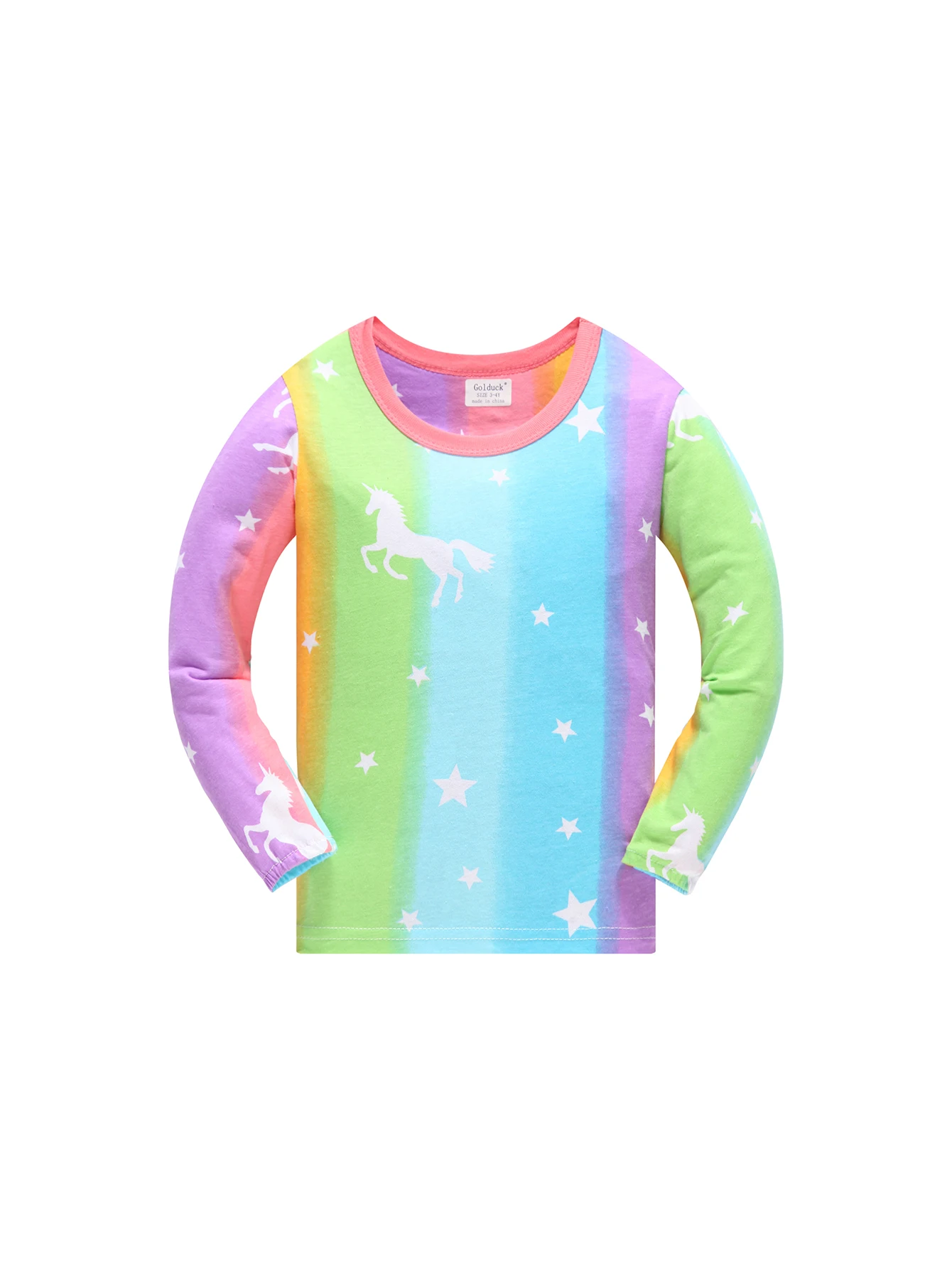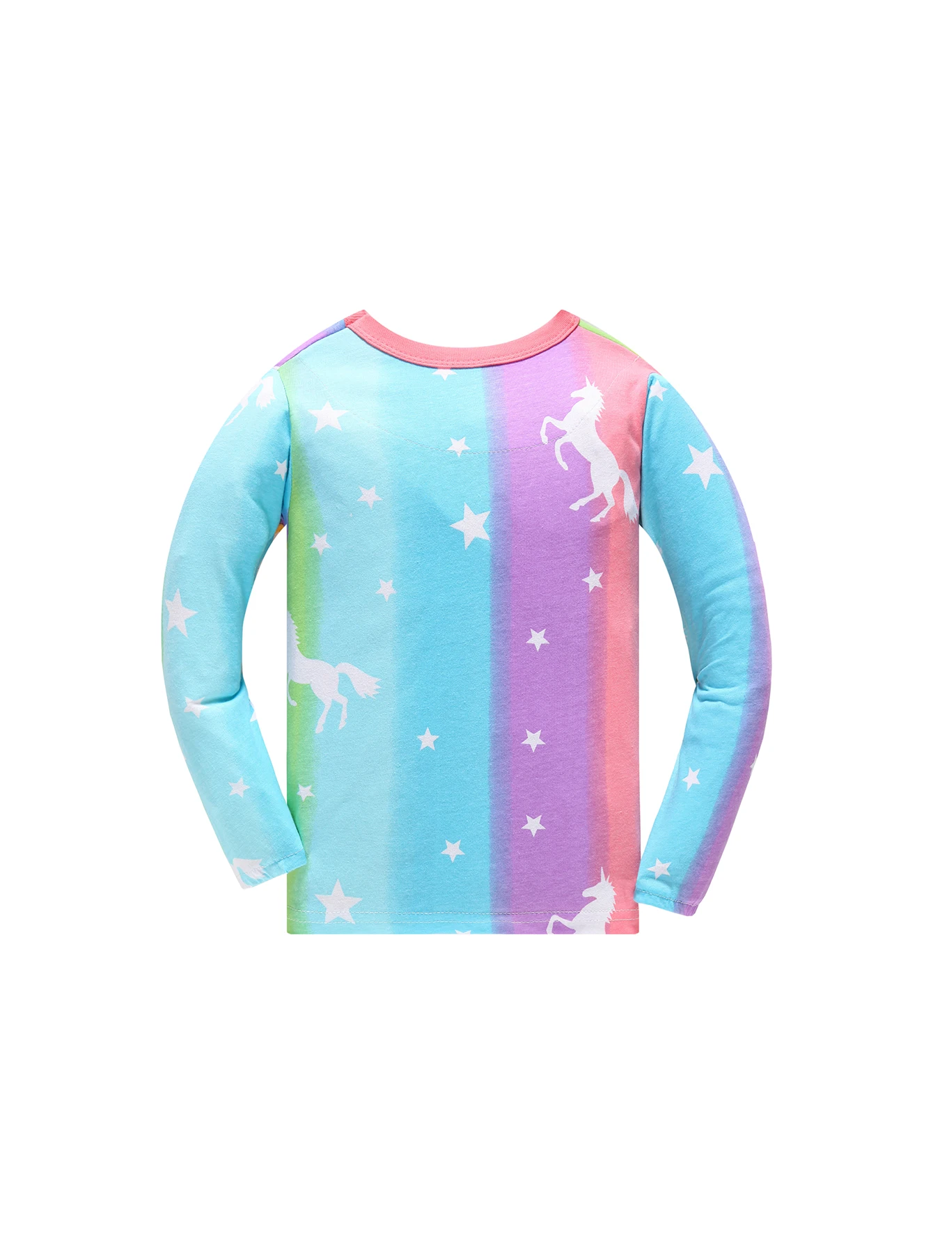 Children's clothing Spring and Autumn long sleeved long pants underwear set Pajama set Girls' colorful unicorn home clothes set