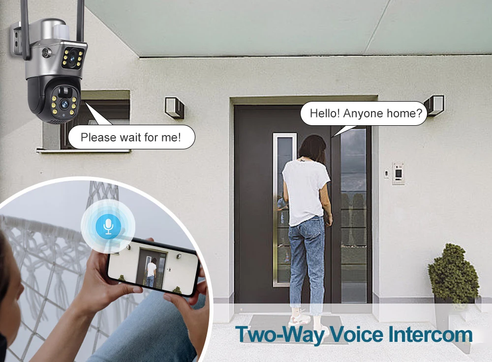 You can communicate with guests though the camera, it can also alarm the thieves.