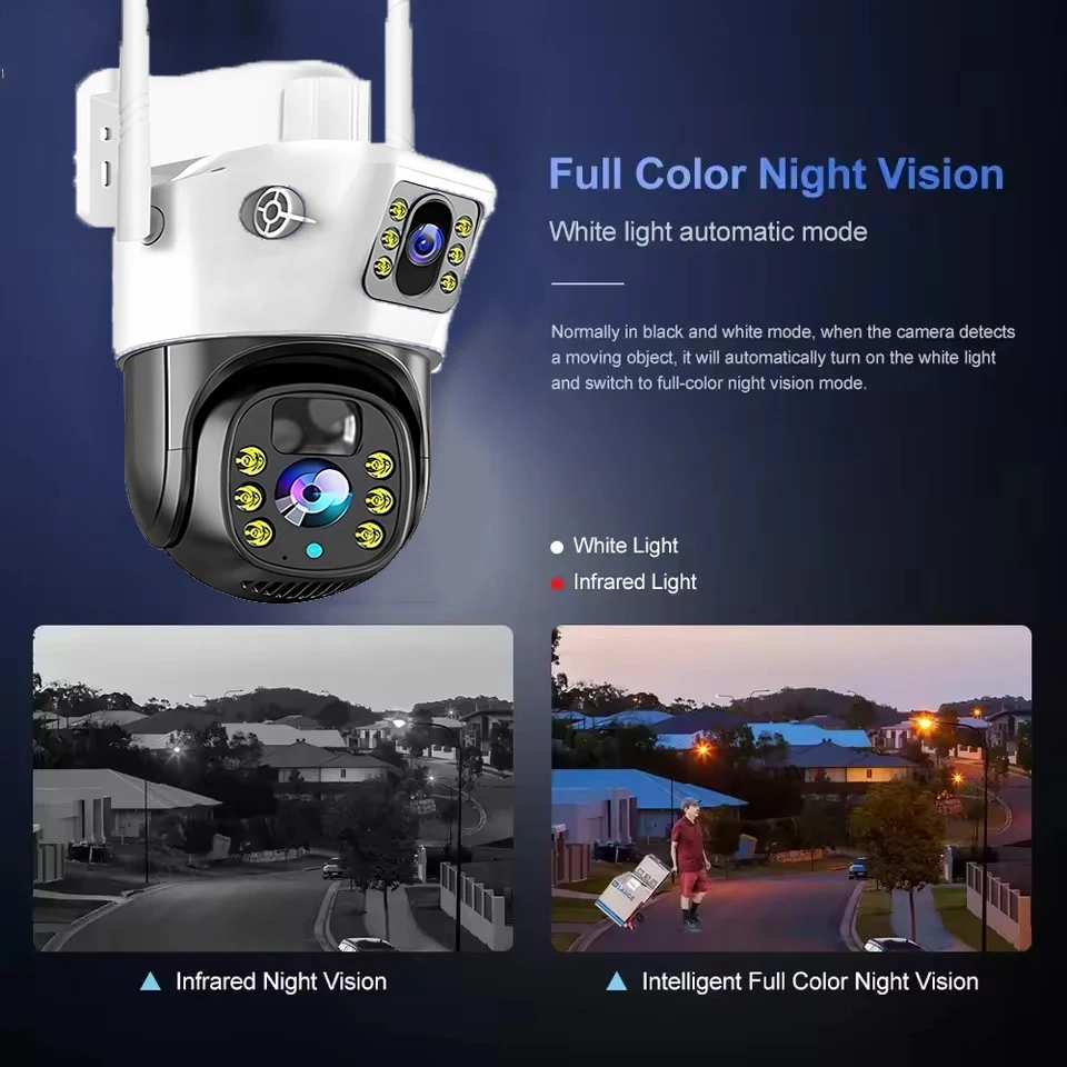 WIFI Security Protection Camera 4K Dual Lens Outdoor PTZ CCTV PIR Human Detection Wireless Surveillance Cam Built-in Battery