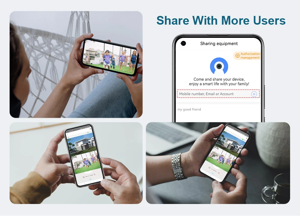 Your camera supports multiple users to view on their iPhone/Android phones at the same time. You can share your camera with your friends and family and share great moments.