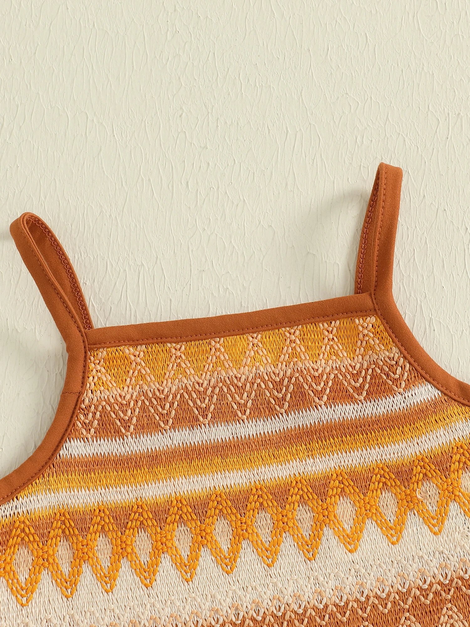 Baby girl camisole top with striped print, spaghetti straps and sleeveless; Baby girl shorts with ripped denim with waistband for a secure fit; Simple yet stylish, perfect summer outfit