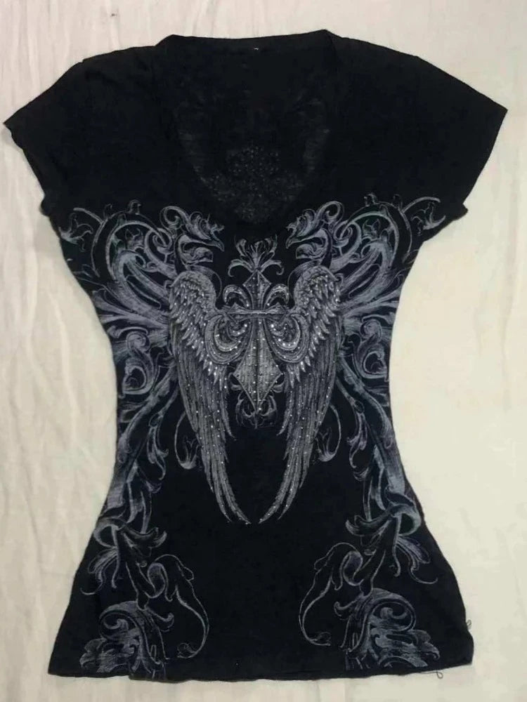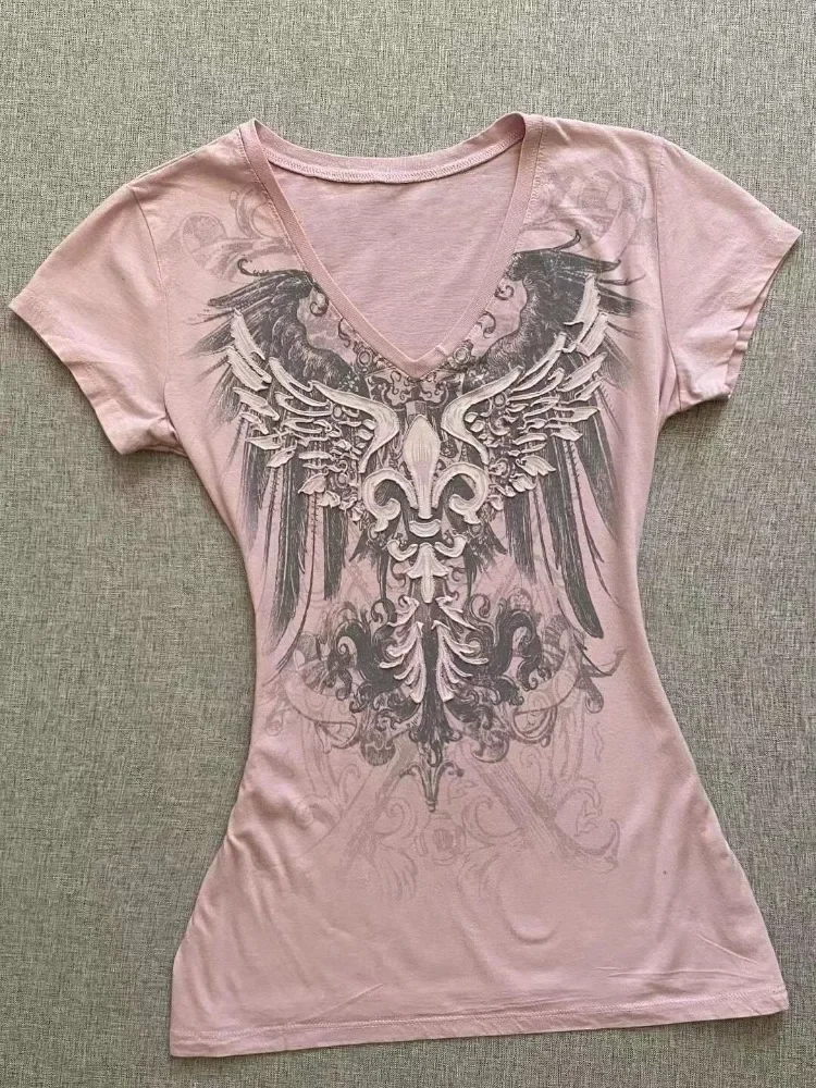 2025 Ropa Mujer Summer Tshirts for Women V-neck Short Sleeve Tunic Camisetas Pink Print Tees Crop Tops Casual Chic Y2k T-shirt