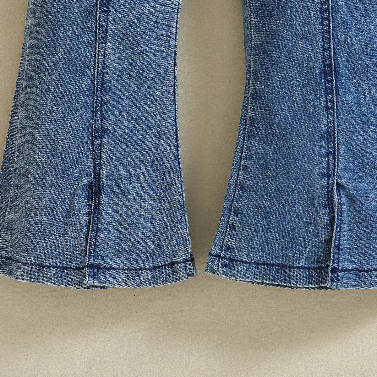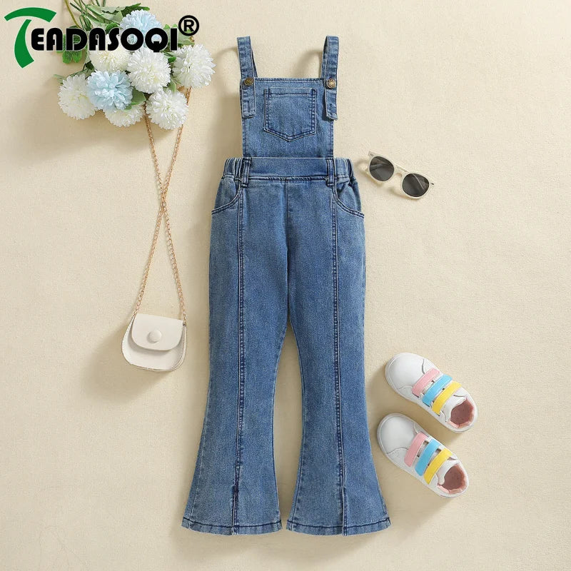 4-8Y Kids Girls Overalls Clothing Spring Autumn Double Shoulder Suspenders Denim Bell Bottoms Children Girl Trousers Clothes