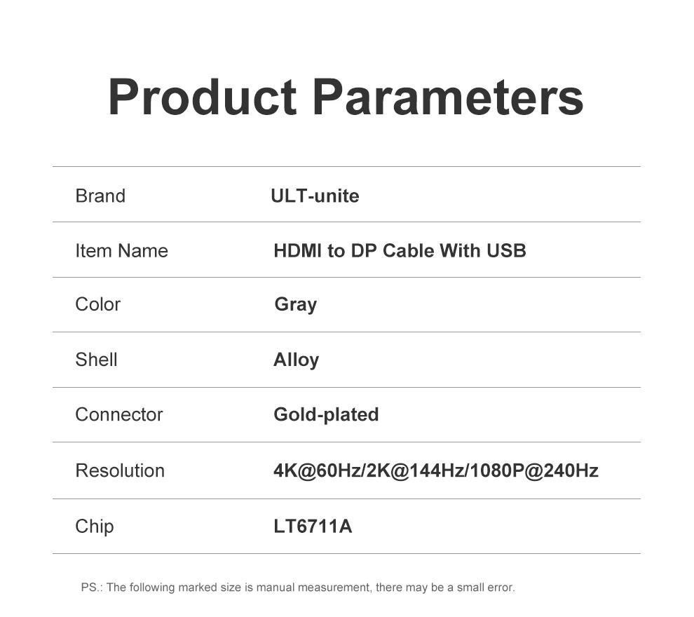 Feature: HDMI-Compatible2.0,HDMI to Display Port Cable With USB