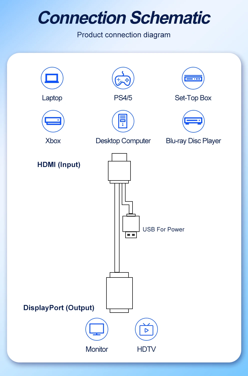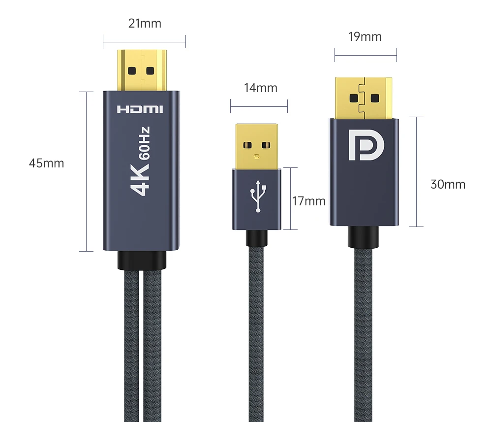 Advantage: HDMI to DP Cable with USB Power Port