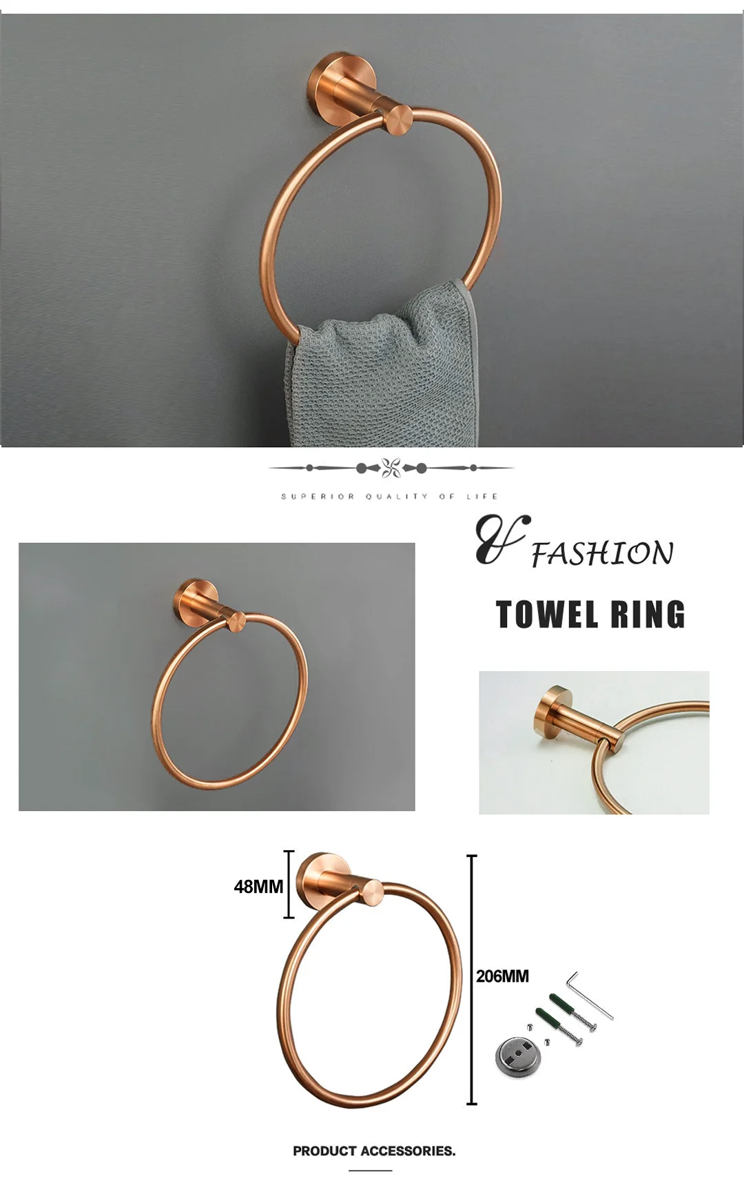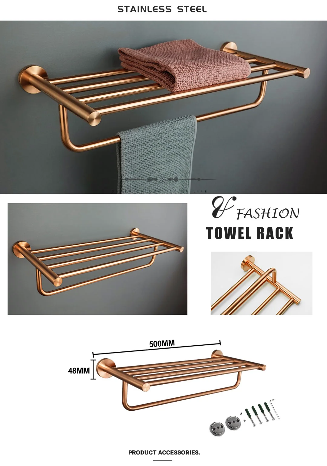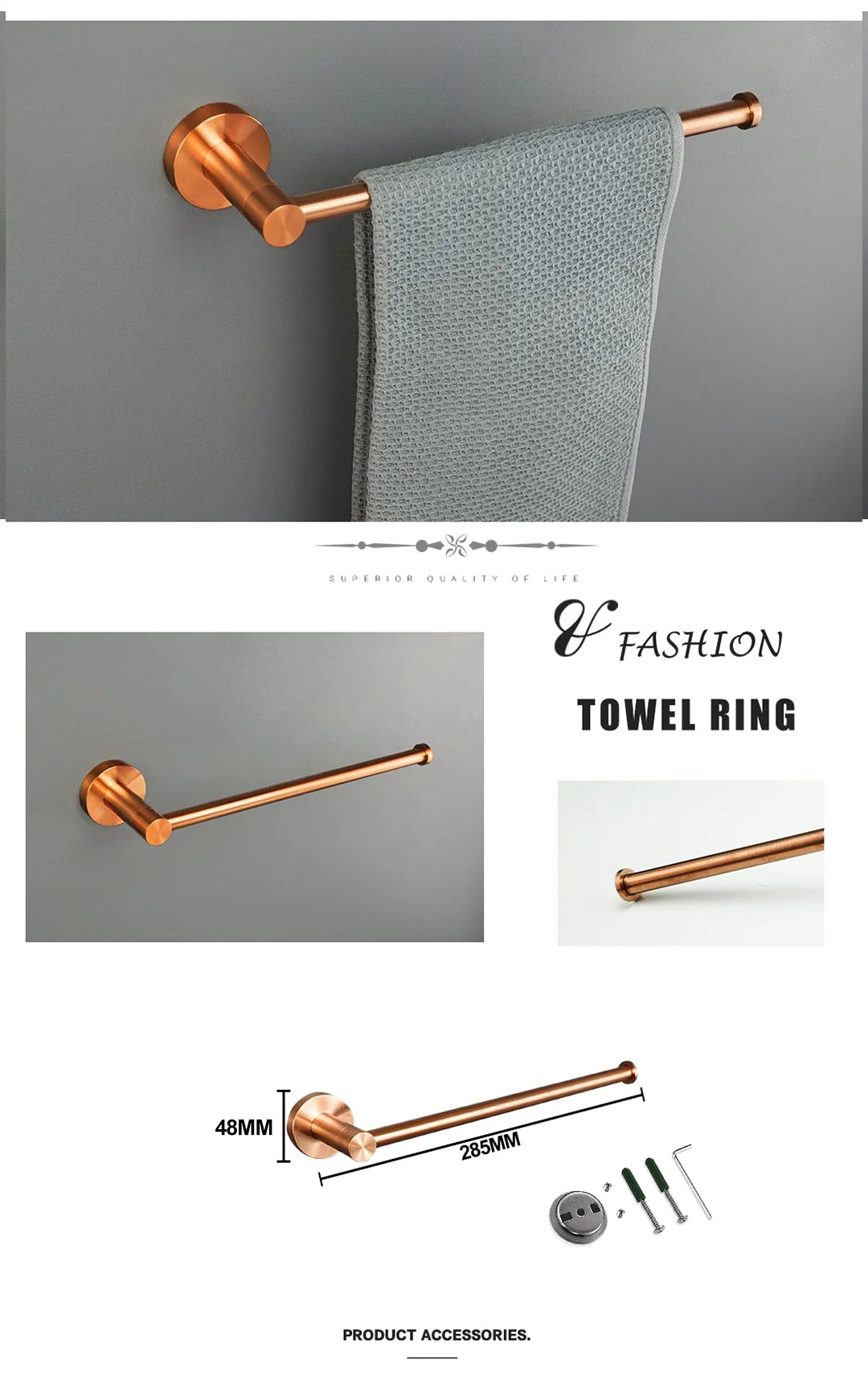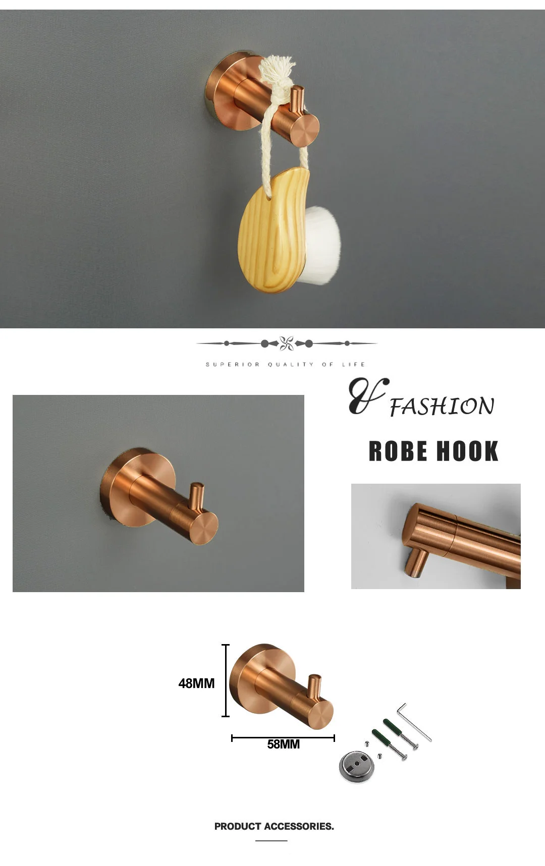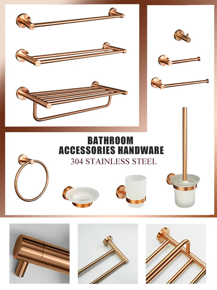Brushed Rose Gold Stainless Steel Wall-mounted Elegant Bathroom Set Paper Towel Stick Toilet Bathroom Robe Soap Soap Dishwasher