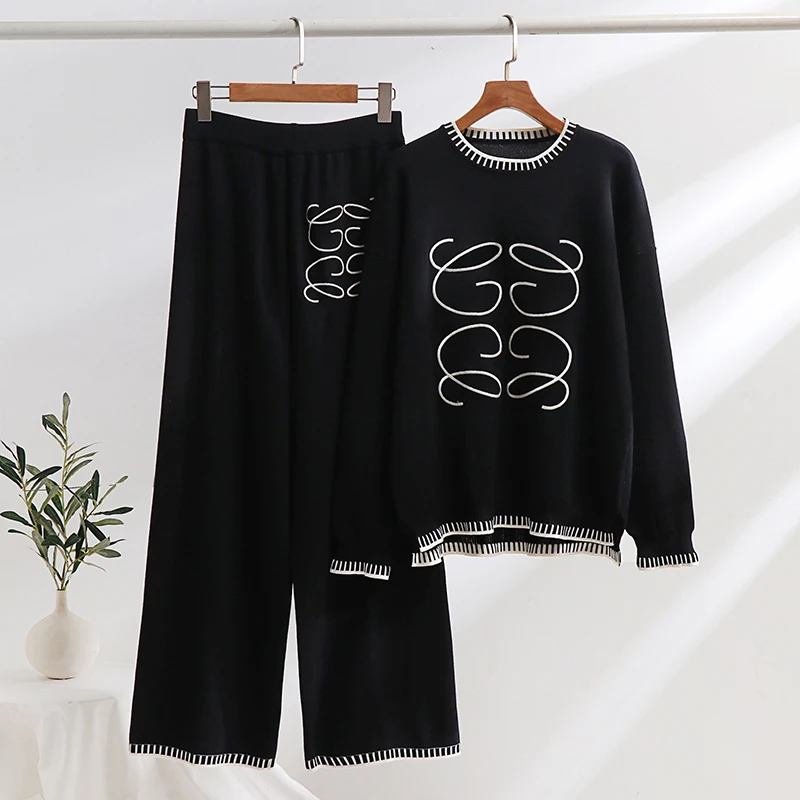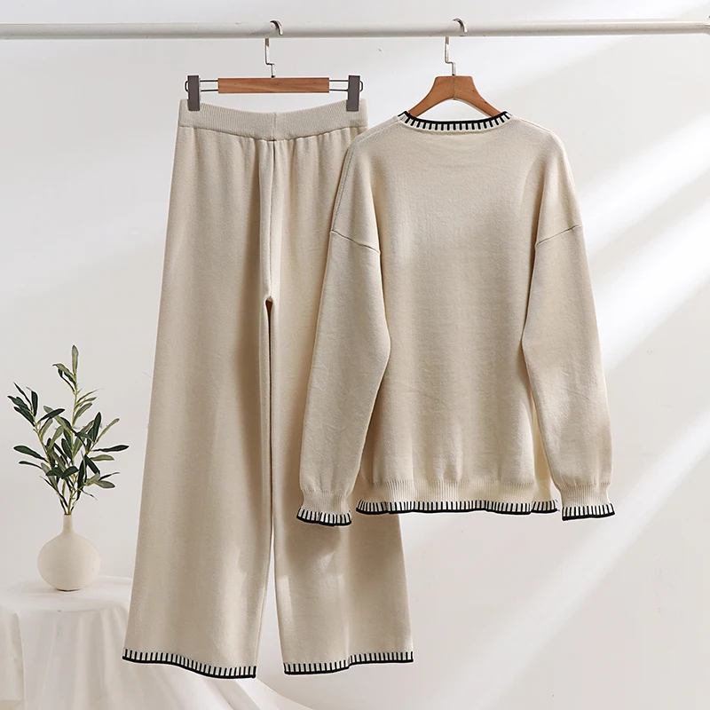 Casual Tracksuit Women Two Piece Set 2 Piece Long Sleeve Cozy Loungewear Knitwear Women Set Knitted Two Piece Set For Women 2024