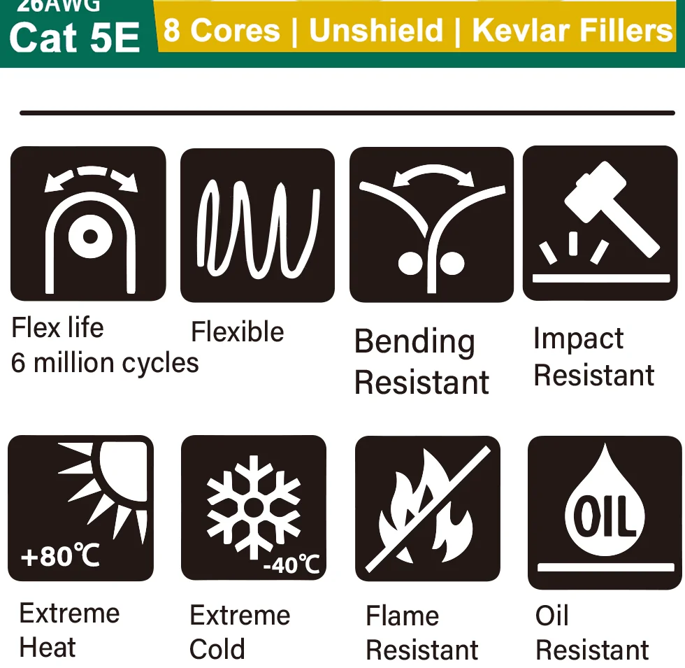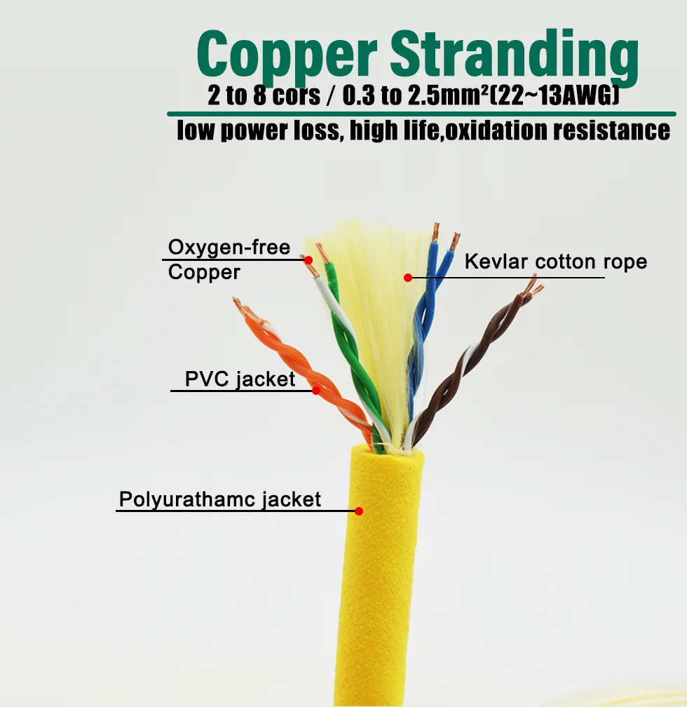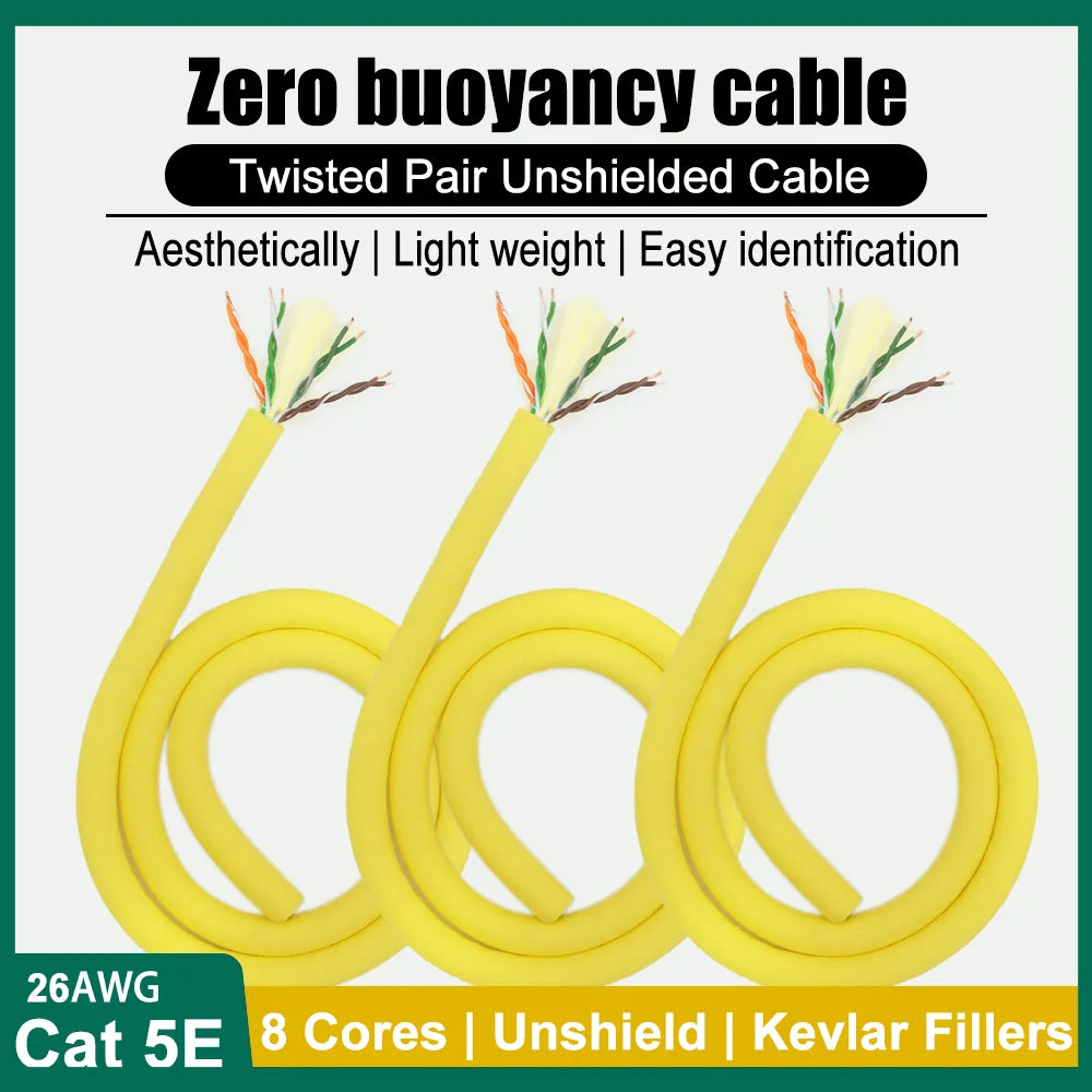 Cat 5E 8 Cores 26AWG Network Zero Buoyancy Cable Unshield Twisted Pair Seawater Waterproof Signal ROV Underwater Robot Cable