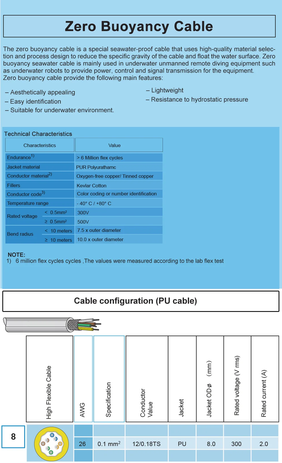 2. Due to the material, the diameter of zero buoyancy cable is bigger than standard cable.