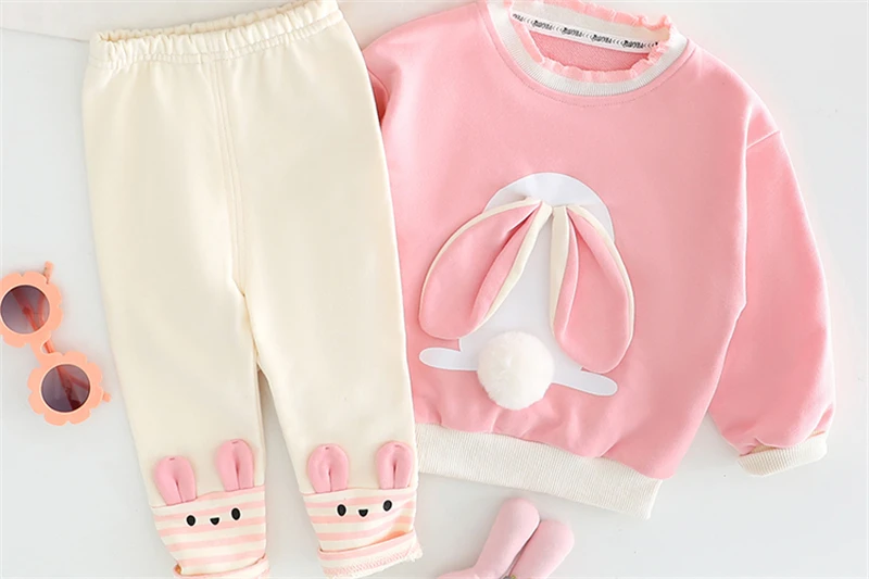 Children Clothing Sets Autumn Baby Girls Cute Cartoon Rabbit T Shirt Pants Toddler Kids Tracksuit Infant Clothes Outfits