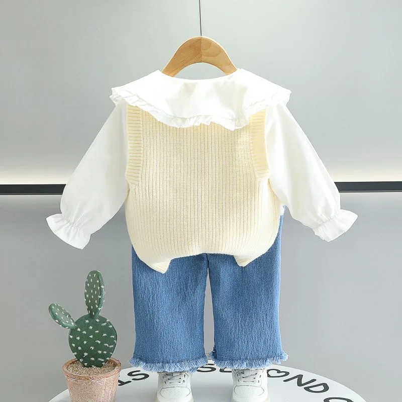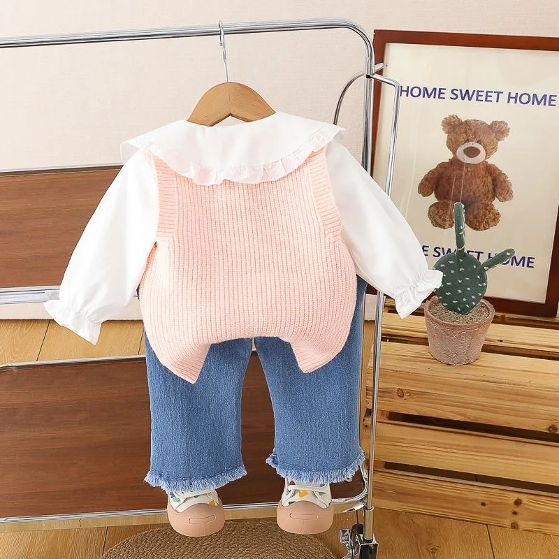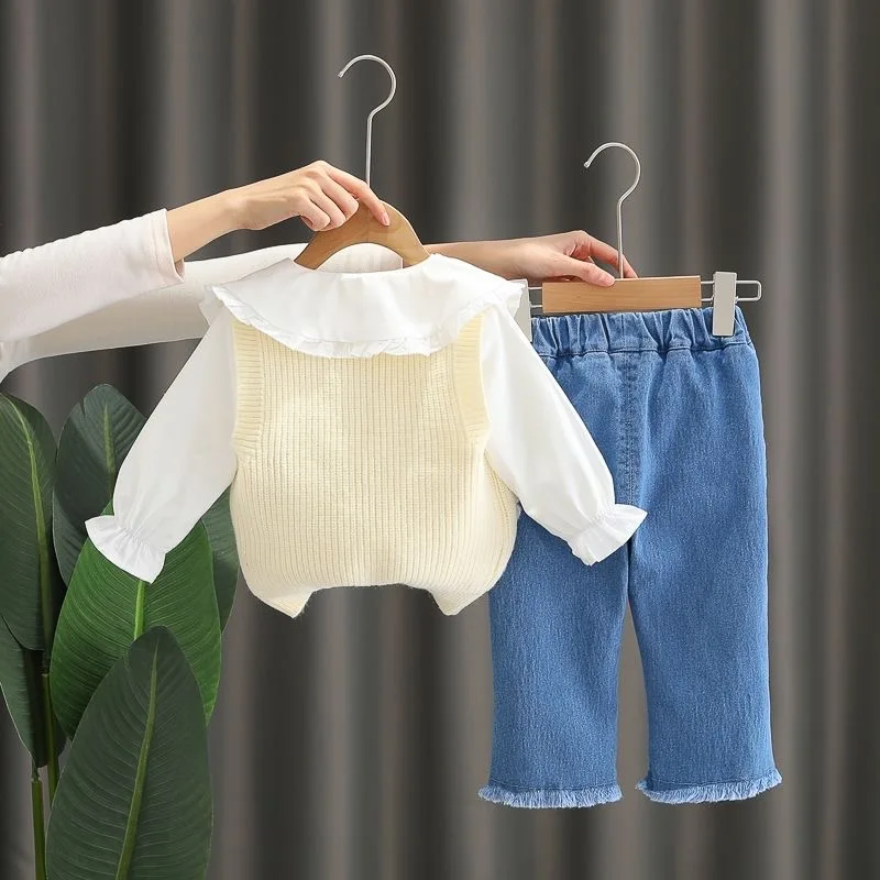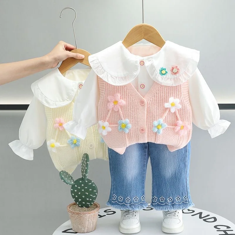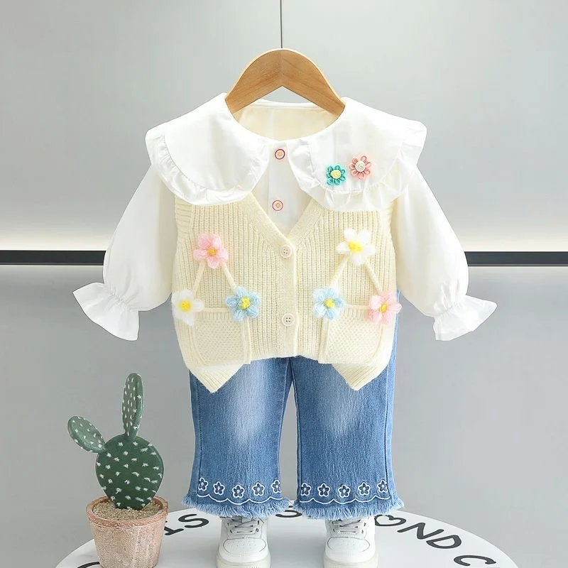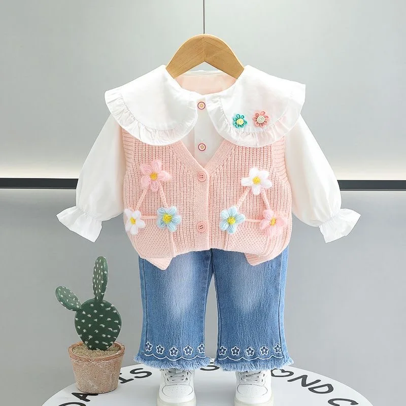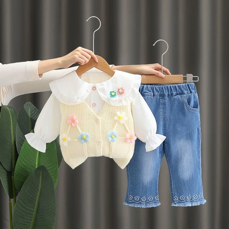 Children Clothing Sets for Girls T Shirt Floral Vest Bow Jeans Spring Autumn Toddler Baby Clothes Infant Outfits Kids Tracksuit