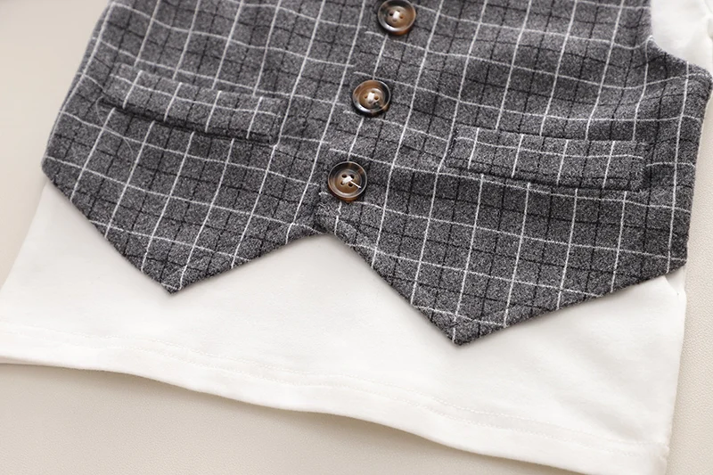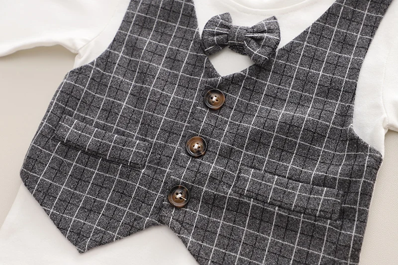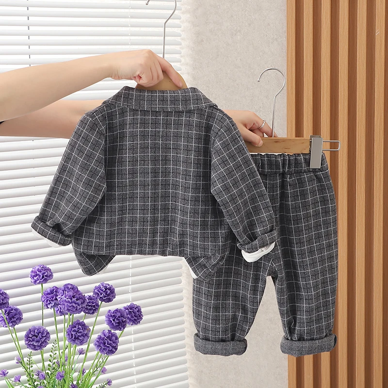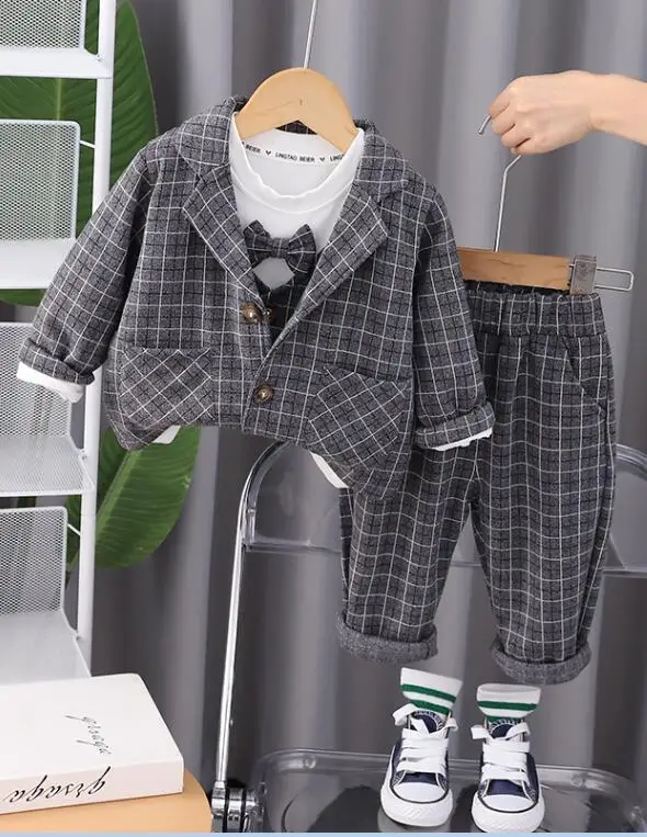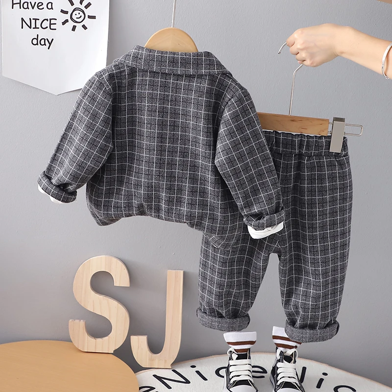 Children Clothing Spring Autumn Baby Boys Wear Infant Lapel Plaid T-Shirt Pants 3pcs/sets Toddler Casual Suit 0-5 Years
