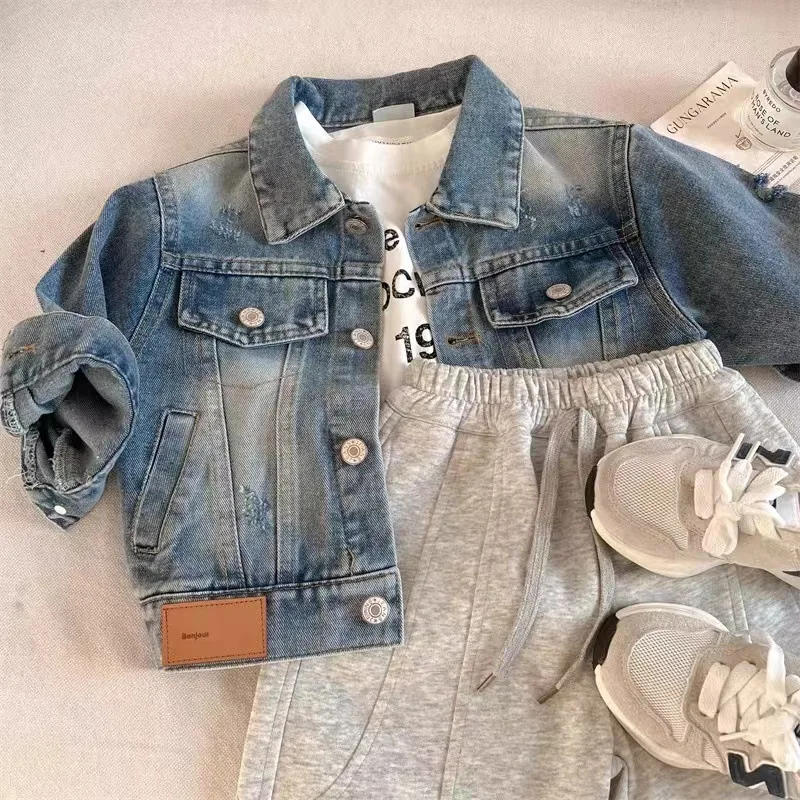 Children's Clothing Denim Jacket 2025 Autumn New Item for Boys and Girls Solid Color Ripped Denim Jacket Baby Versatile Top