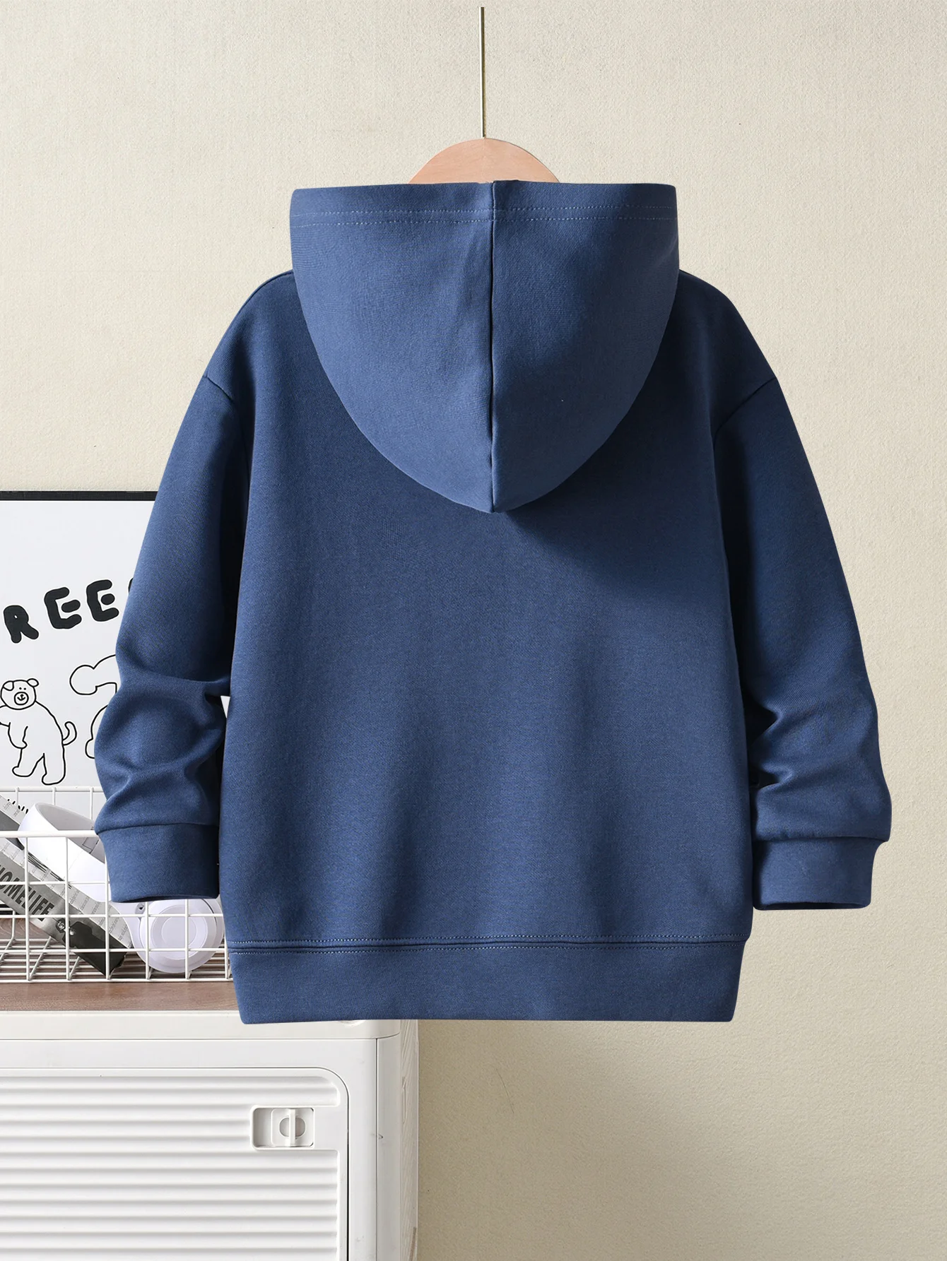 Children's clothing hoodie; shark print pattern; trendy boys' top; hooded pullover sweatshirt to be worn as outerwear.