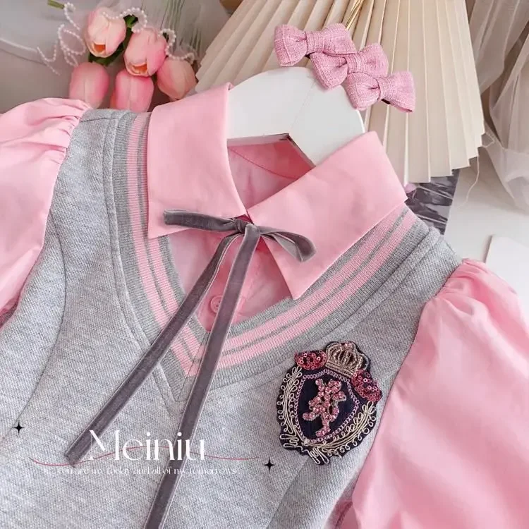 Children's Clothing Sets Fake Two Pieces Blouse + Pleated Skirt Kids Clothes Girls 4 To 15years Skirt Sets Baby Girl Outfit Set