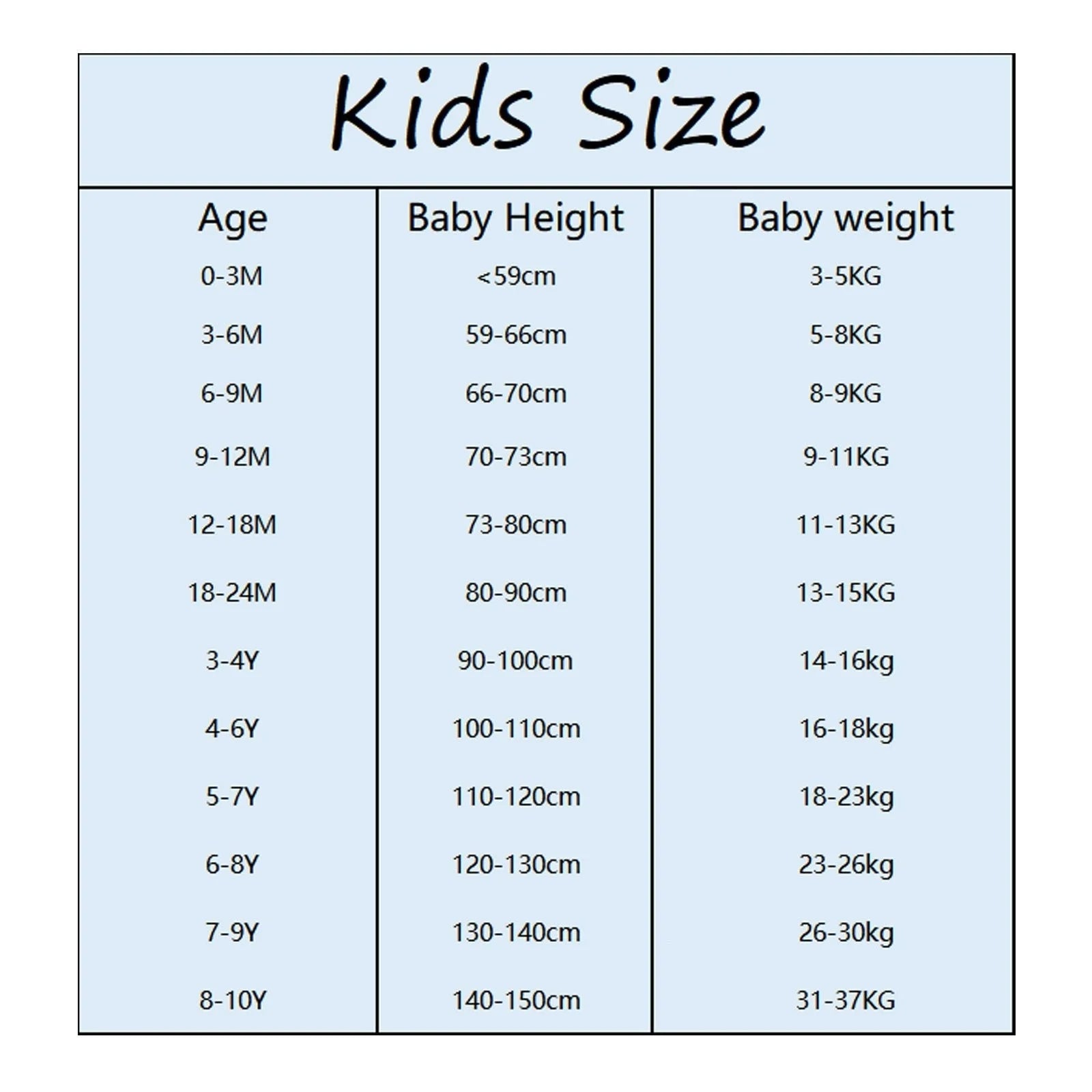 8-10Y | 140-150cm | 31-37KG |