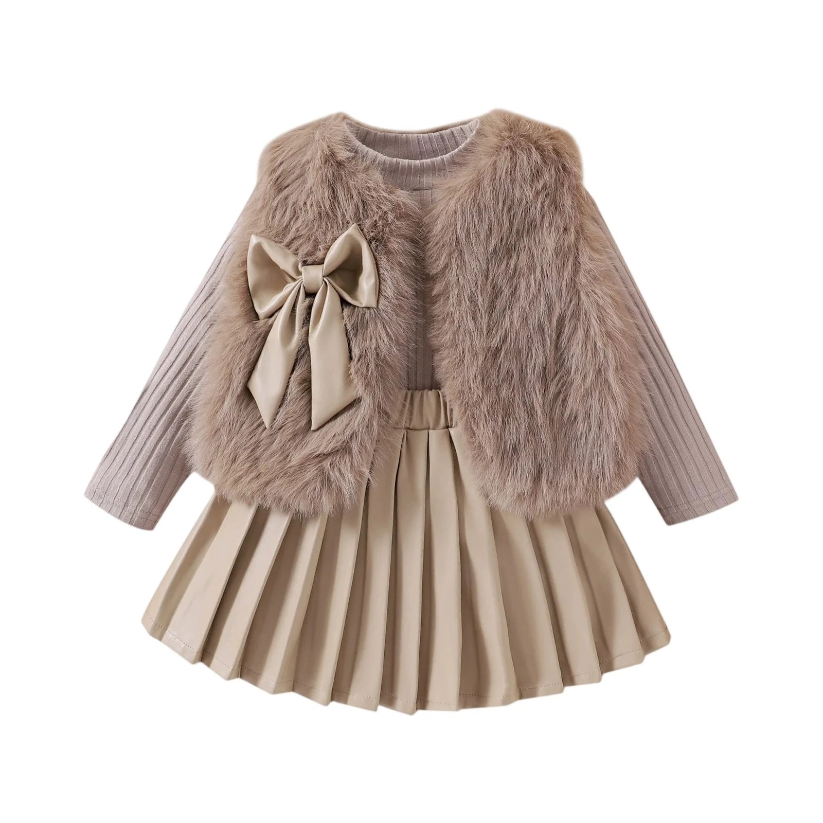 Children's Clothing Sets Furry Vest + Long Sleeve T-shirt + Leather Skirt 3pcs Sets Baby Girl Outfit Set Toddler Girl Clothes