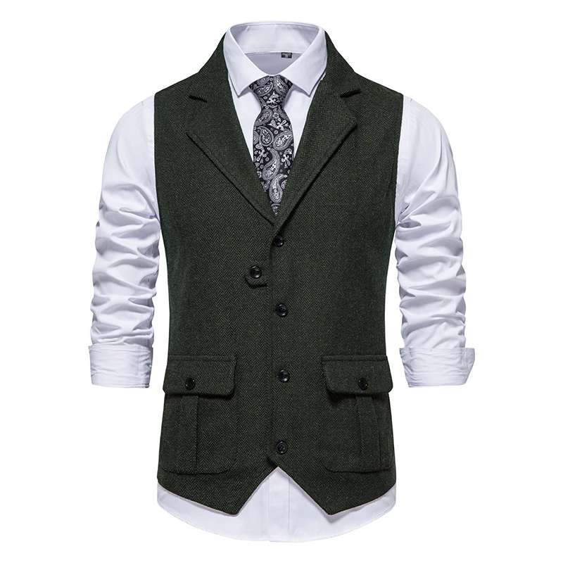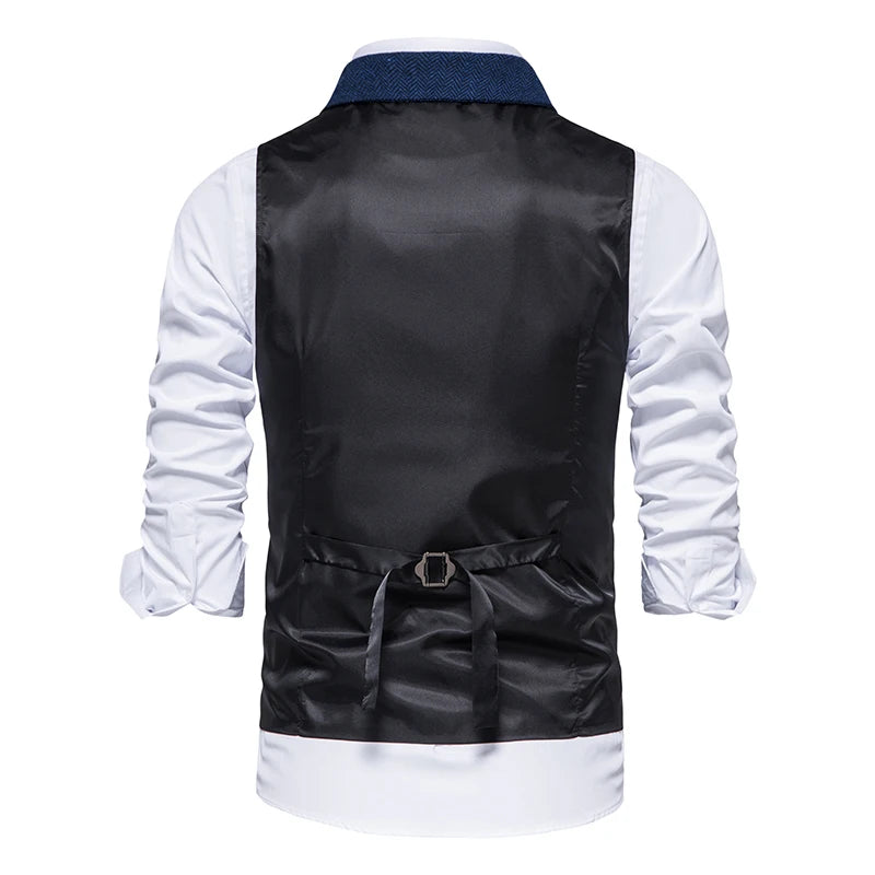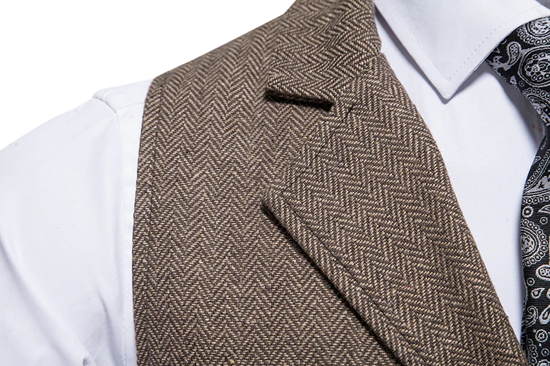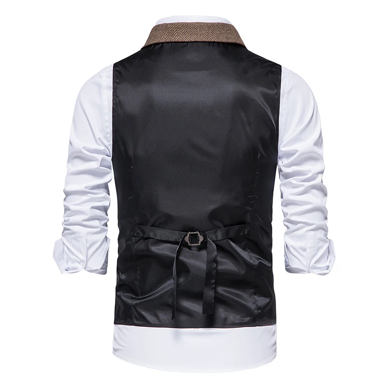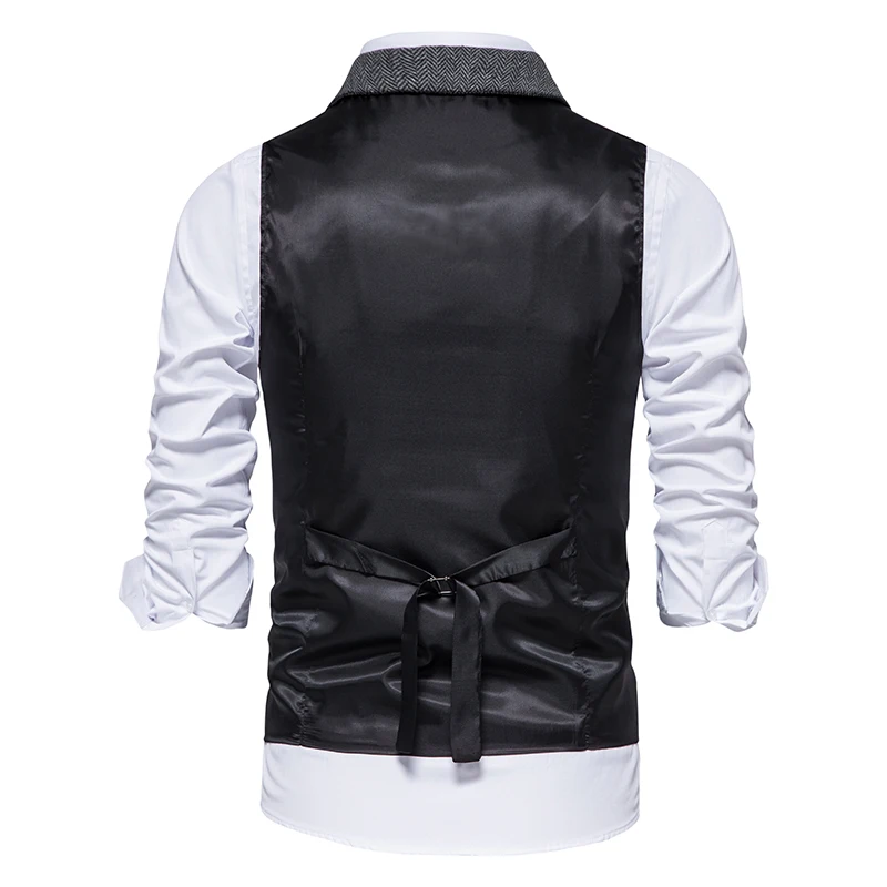Costume Homme Vintage Suit Vest Men Herringbone Tweed Gentleman Elegant Wasitcoat Mens Business Formal Dress Vest Chaleco Hombre