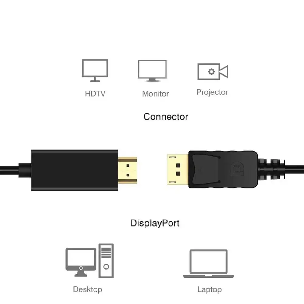 DisplayPort to HDMI-Compatible Cable 4K DP to HDMI Adapter Display Port Video Audio Converter for PC HDTV Projector Audio Cable