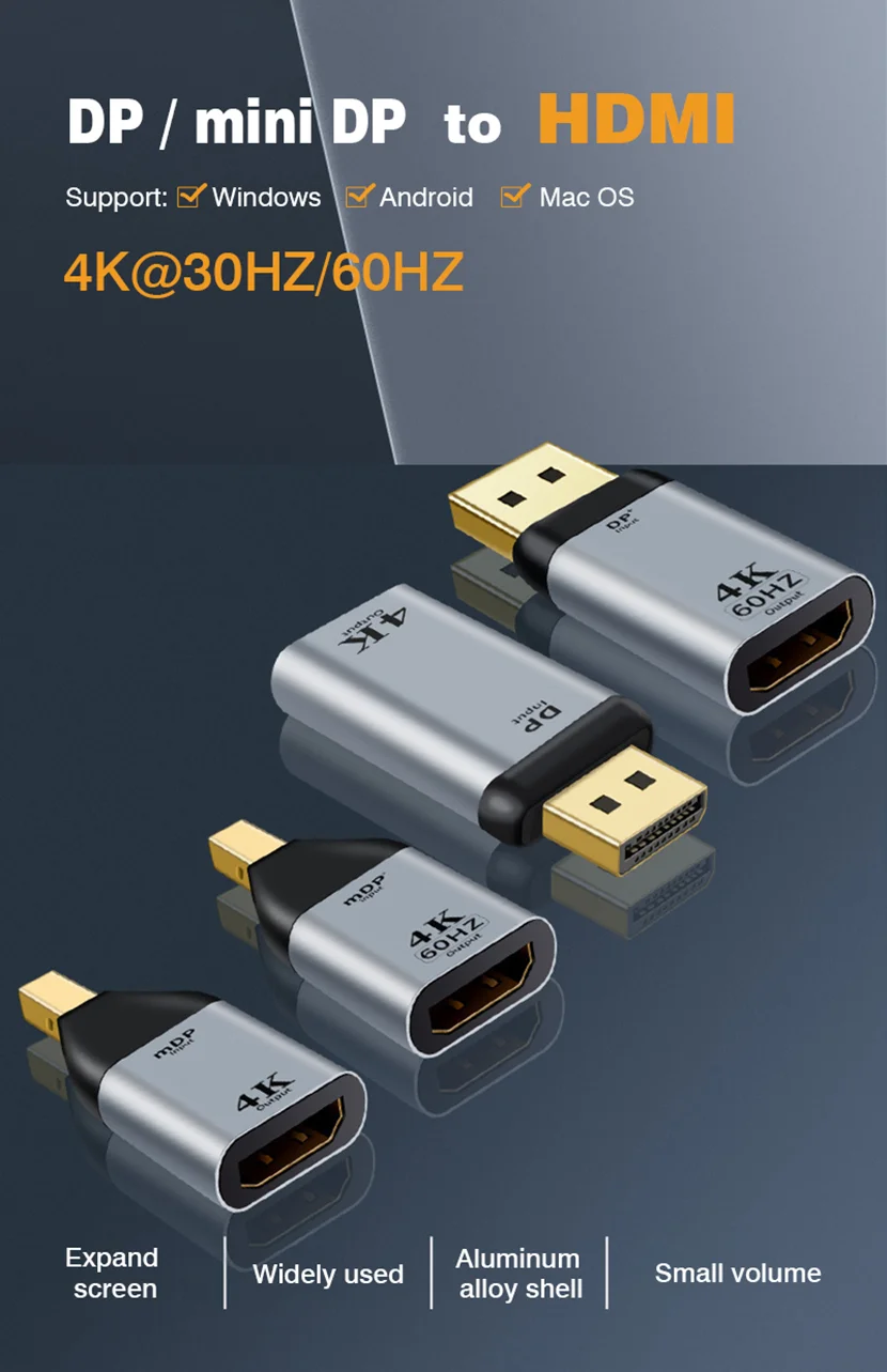 DP1.4 to HDMI2.1 Cable mini DP 1.2 to HDMI 2.0 Video Adapter 4K@60Hz 8K@60Hz DisplayPort Adapter For PC Laptop Projector Monitor