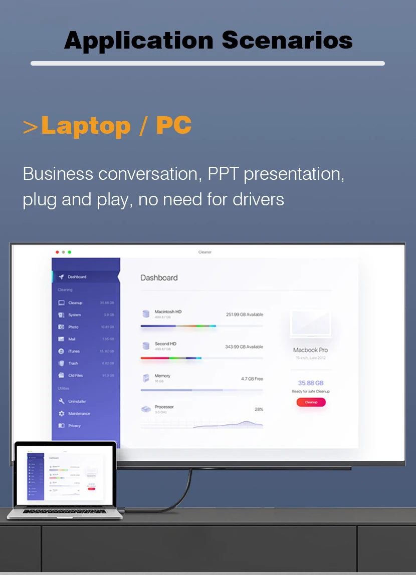 mini DP 1.2 to HDMI 2.0: 4K@60HZ
