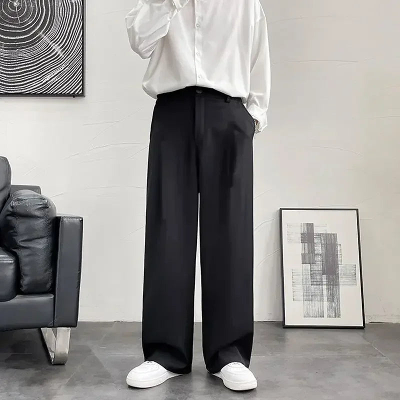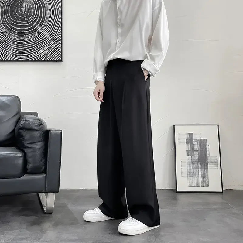 Draped Man Suits Pants Black Trousers for Men Fluid Wide Leg High Quality Designer Clothes Elegant Vintage Fabric Cheap Spring
