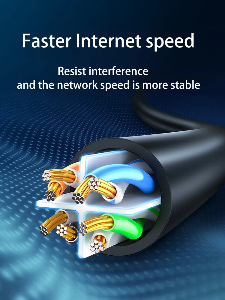 Every 8 cores are twisted into 1 strand, total 4 pairs. Each pair is isolated by the cross skeleton to reduce mutual signal interference. Reduce the network packet loss rate, network speed is more stable.